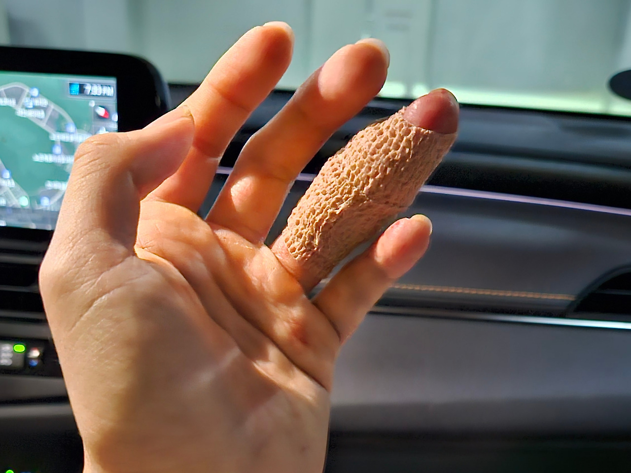 신기한 것은 1년 전에 친한 친구 와이프가 이것과 매우 유사하게 손가락을 다쳐 응급실을 간 일이 있었습니다. 그때 다친 과정을 듣고 그 광경을 워낙 생생히 머릿속에 그려서인지, 그 모습이 나의 버전으로 재생되고 있는 것 같았습니다. 그래서인지 그렇게 당황하진 않았고 손가락에 통증도 그렇게 심하게 느껴지지는 않았습니다.