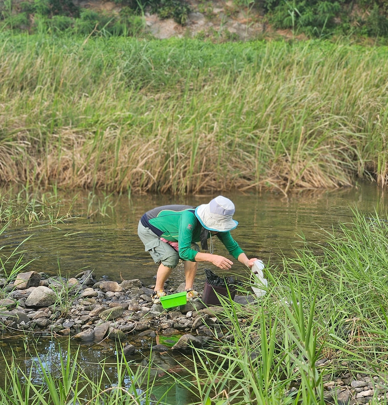 엄마차 번호임을 확인하고 풀숲 저편 넘어 물가를 바라보니 초록색옷을 입은 여자 한 명이 아래를 내려다보며 물안에서 뉘엿뉘엿 걷고 있었다.