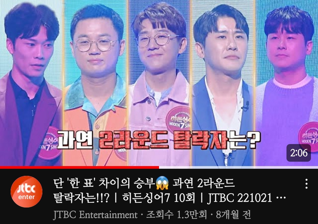 순식간에 내 소절을 지나 1라운드 노래가 끝났다. 내 노래가 끝나고 정신없는 와중 뒷 몇 소절의 노래는 제대로 들을 수 없어서 어디에 영탁이 있는지 감 잡을 수 없었다. 모두 후루룩 통에서 나와 대기실로 이동해 2라운드 노래 연습을 하였다.