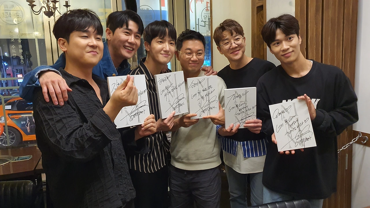 그 자리에는 패널로 왔던 그렉을 비롯한 휘성팀도 함께였다. 영탁 형님에게는 형제와도 같은 존재들. 나는 공교롭게도 영탁 형님 옆자리에 앉게 되었다. 실감 나지 않는 앵글이었다. 내 옆에 연예인이 앉아있다니 이게 뭘까.. 번호를 다 받아 단톡방까지 그 자리에서 만들자고 하셨다. 그리고 이제 나는 그를 형님이라고 부를 수 있었다. 이런저런 이야기들을 나누며 시간이 흘렀다.
