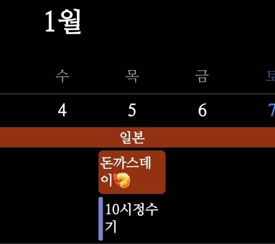 공동캘린더에 입력된 돈까스데이. 올해는 일본여행 중이라 시즈오카의 어느 돈까스집에서 먹었다.