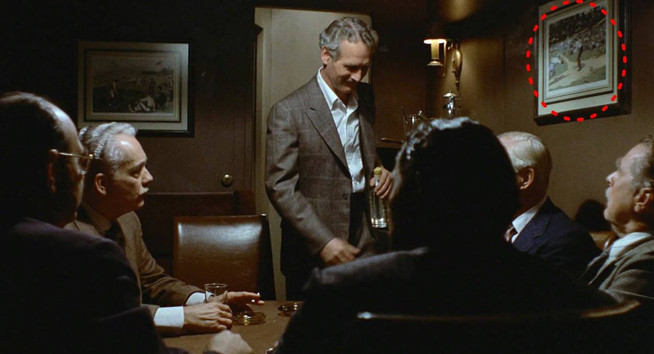 곤도프(폴 뉴먼 분)가 도일 로네간(로버트 쇼 분)을 사기극에 끌어들이기 위한 첫 작업은 열차 안 포커판이다. 포커판이 벌어지는 벽 한쪽에 걸린 그림에 주목한 이는 얼마나 있을까.