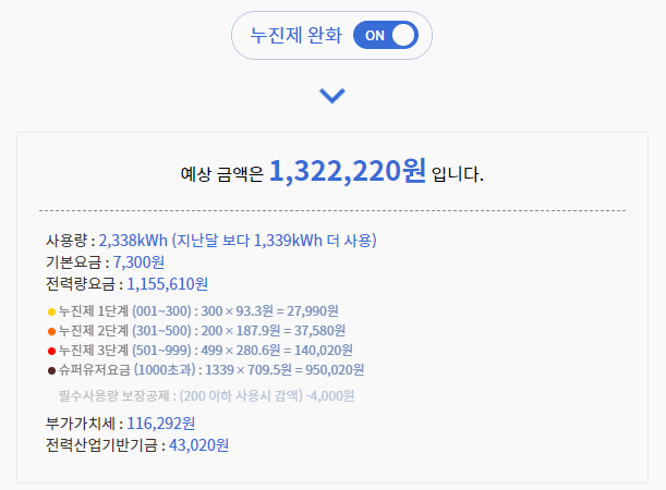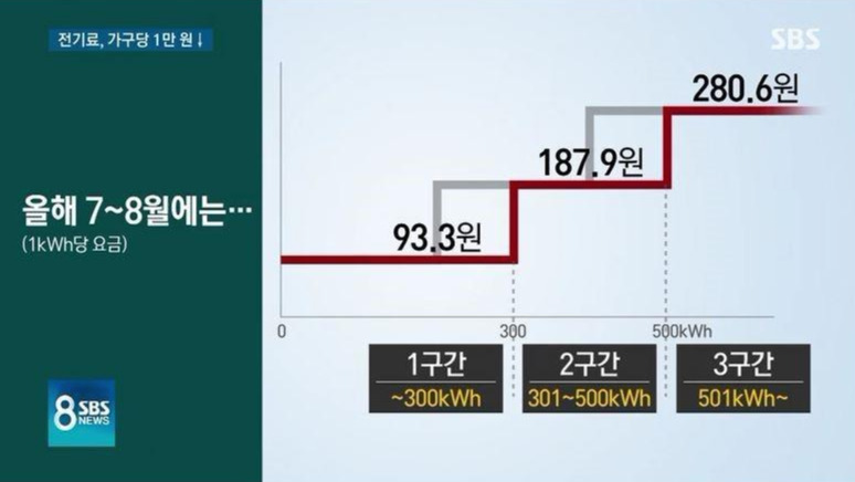 사용량이 1,000 kWh를 넘어가면 요금이 어마어마해집니다.