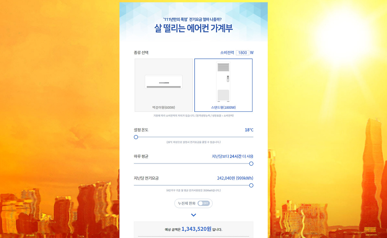 가장 뜨거웠던 8월 첫째 주, 에어컨 전기요금 계산기를 만들었습니다.
