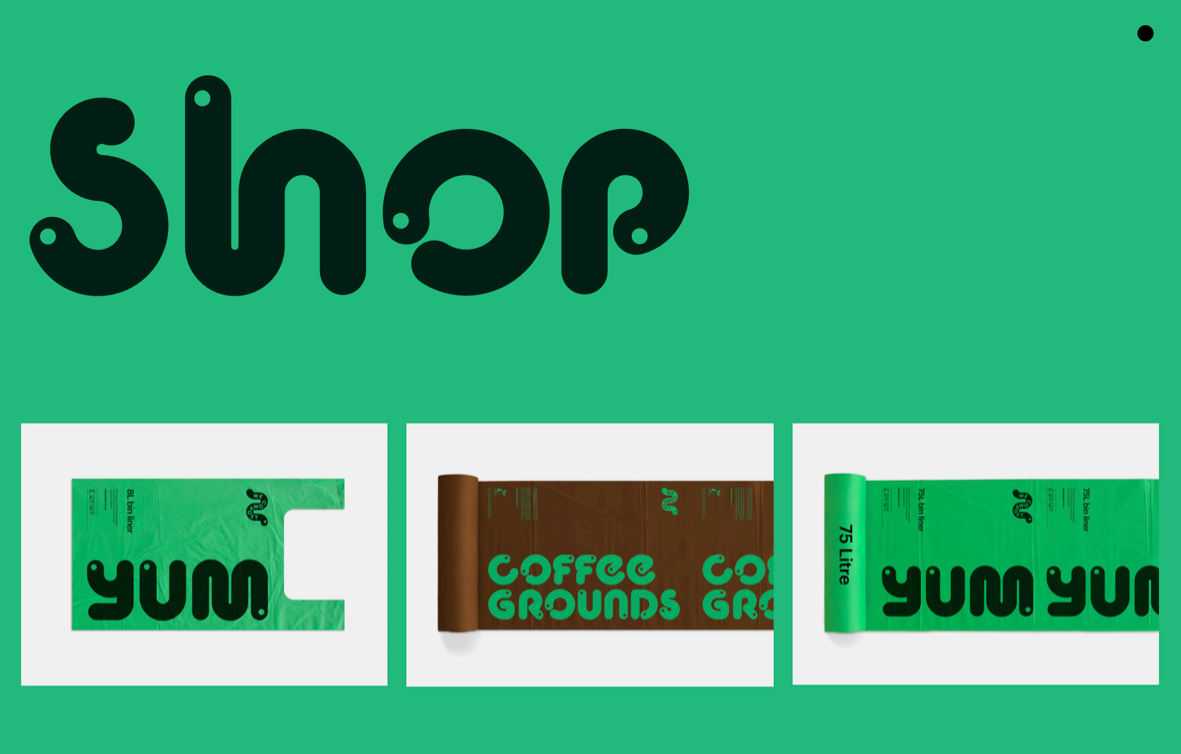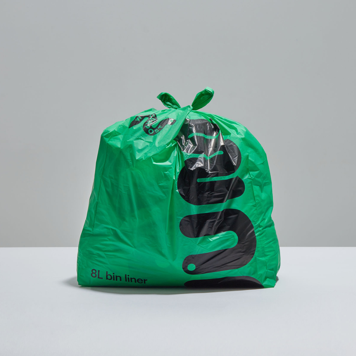 재미있는 문구와 함께 가시성을 높인 쓰레기봉투는 용량과 용도 별로 웹사이트에서 구매 가능합니다. 지렁이가 분해하는 쓰레기를 직관적으로 쓰레기봉투에 표현하고, 타이포그래피를 활용해 쓰레기를 먹어치우는 의성어를 위트 있게 그래픽으로 활용합니다.