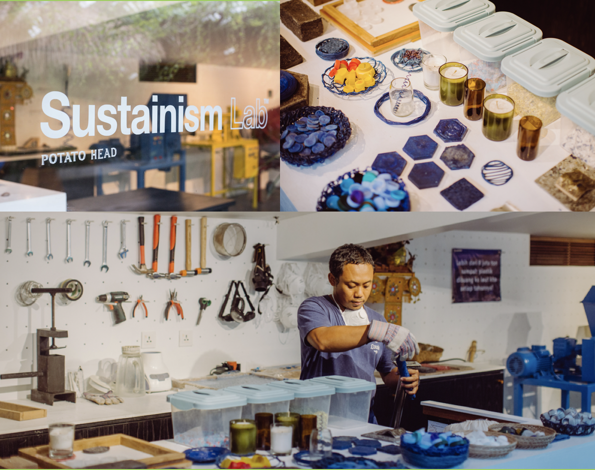 호텔에서 제공되는 물품과 공예품은 Potato Head가 설립한 Sustainism Lab에서 제작됩니다. 인도네시아 해양 쓰레기 및 폐기물에 대한 솔루션을 찾는 연구와, 혼합 원료를 새로운 제품으로 재생하는 실험을 하는 Sustainism Lab은 디자인 워크숍과 지역 연계 프로그램을 개최해 섬의 이익과 자연보존을 위한 플랫폼 역할을 하고 있습니다.