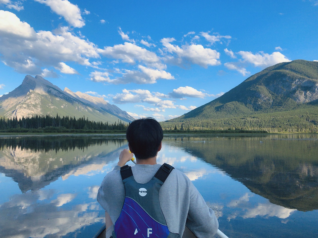 밴프 버밀리언 레이크에서 탔던 카누