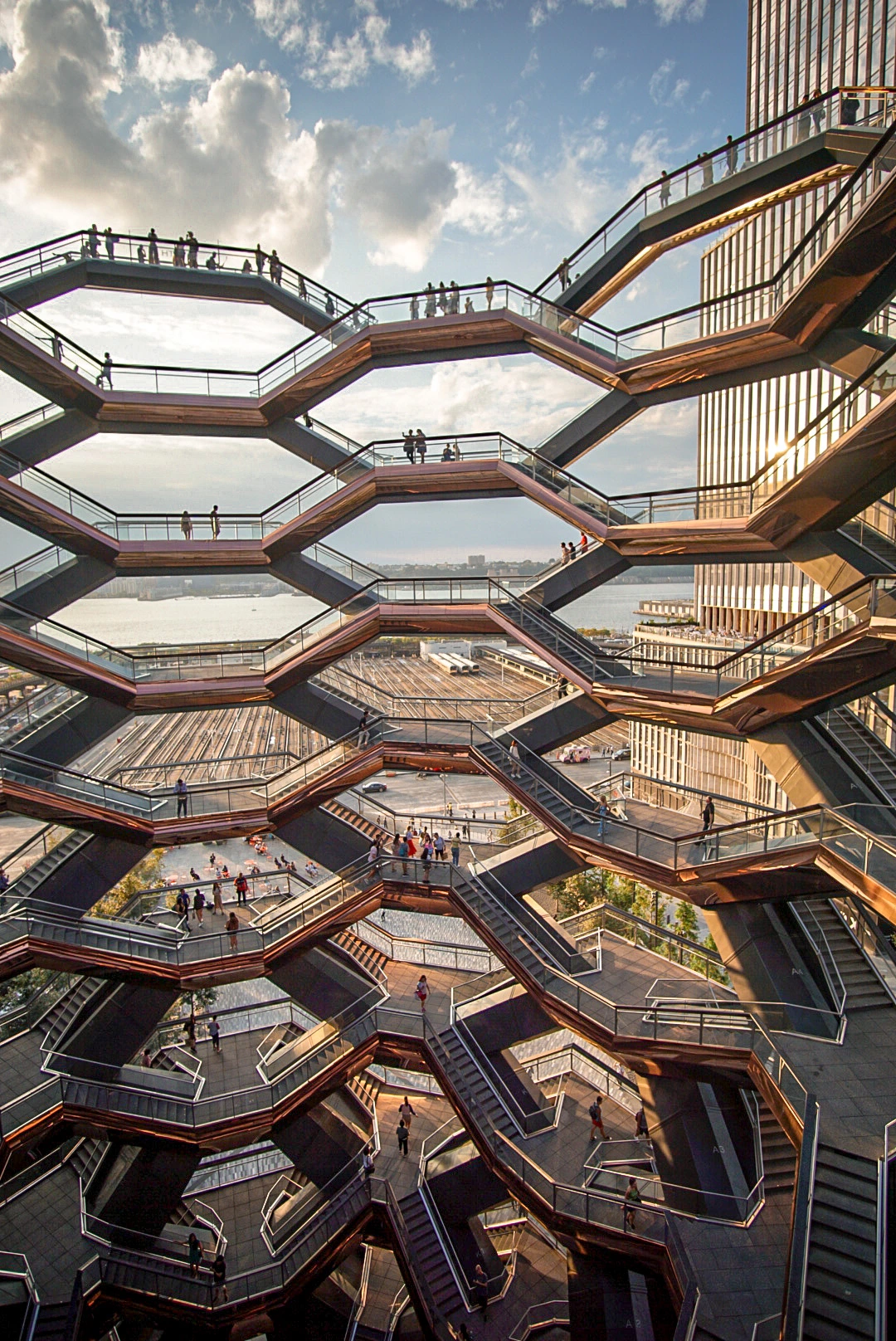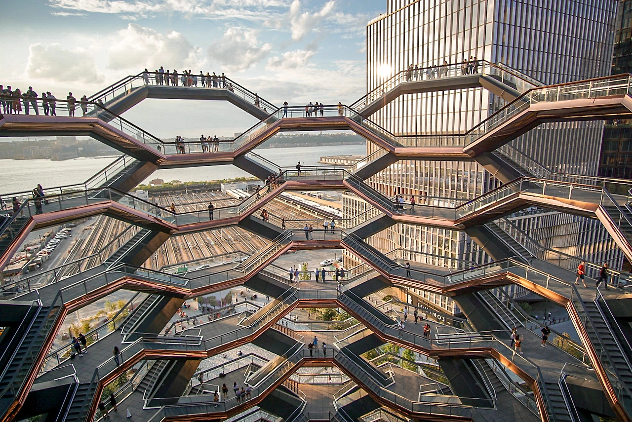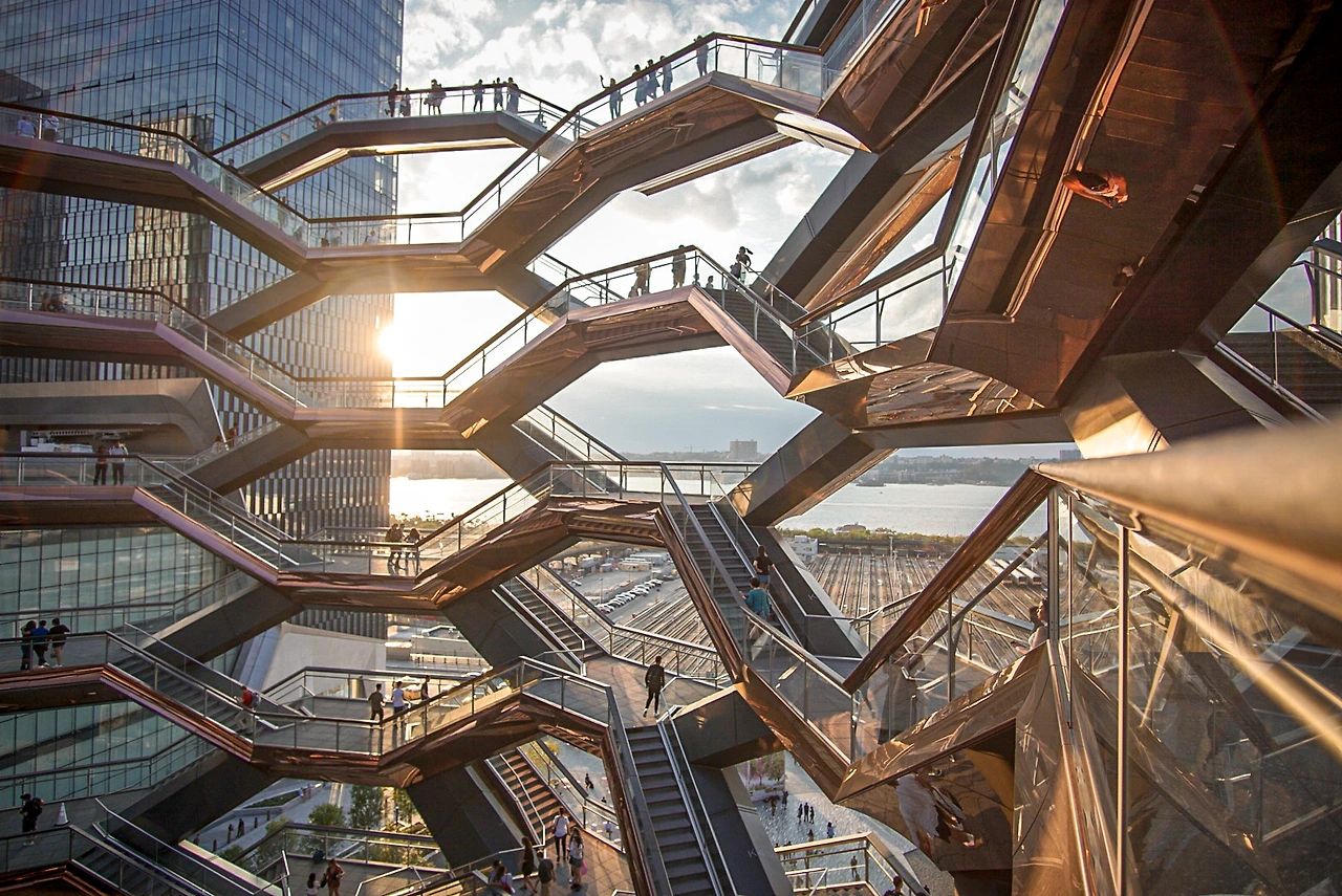마치 벌집을 연상시키는 외관이 독특한데 해가 질 때 가면 황금빛으로 빛나는 베슬을 만날 수 있다.