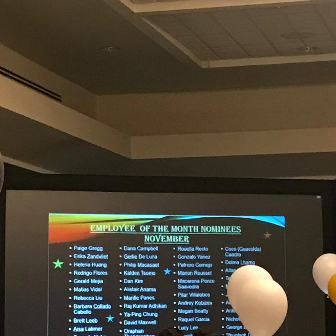 술과 함께 저녁을 먹으며 전 직원들이 함께 만든 크리스마스 기념 영상도 보고 여러 가지 이벤트도 했다. 그리고 이 날 나는 감사하게도 각 파트 별로 주는 이 달의 직원 상을 받기도 했다. 그리고 나서 술을 마시며 사람들과 얘기하고 놀고 있었는데 클럽파티가 시작됐다. 여기서 갑자기 클럽파티라니 조금 의외였지만 다들 스테이지로 나와서 즐겼고 나도 같이 나가서 즐겼다.