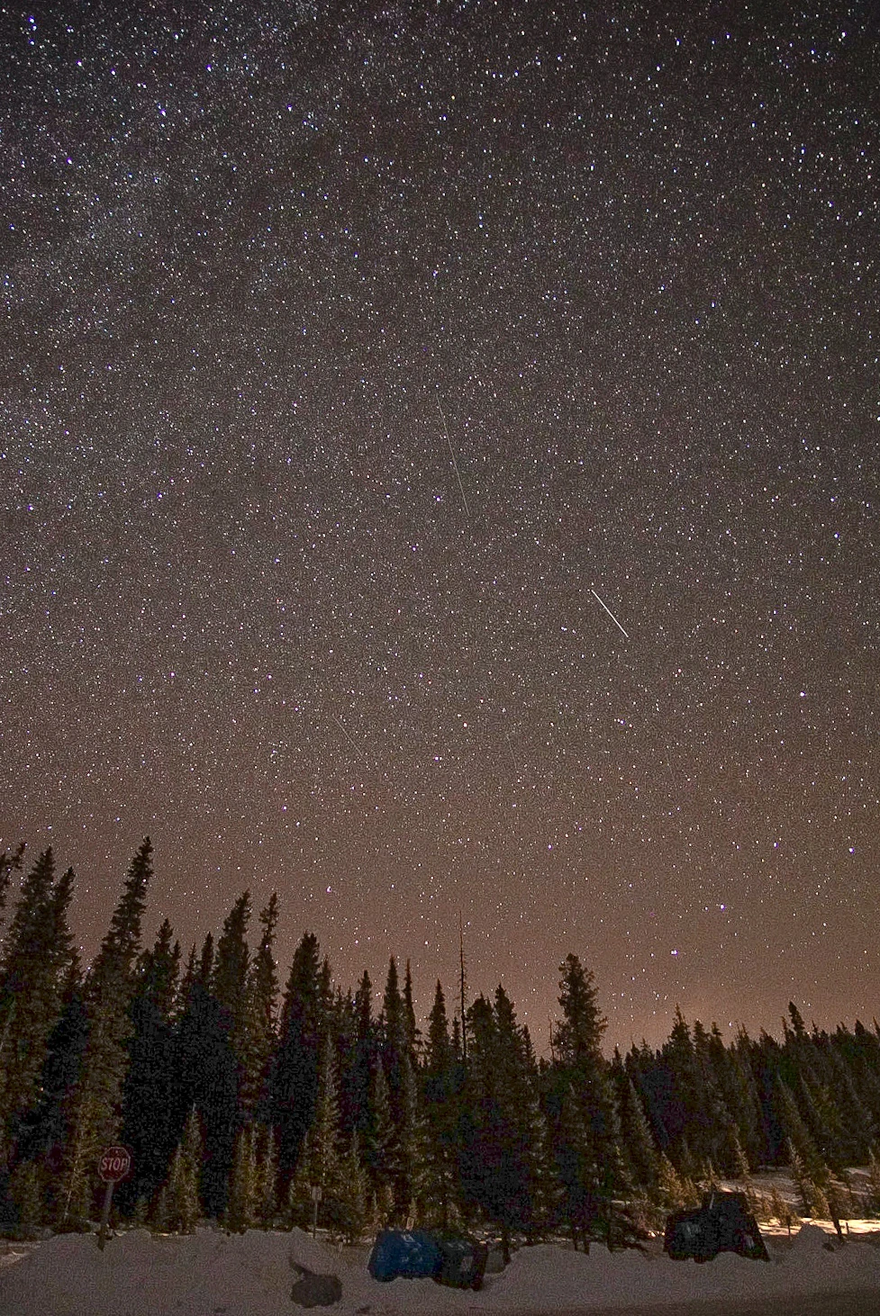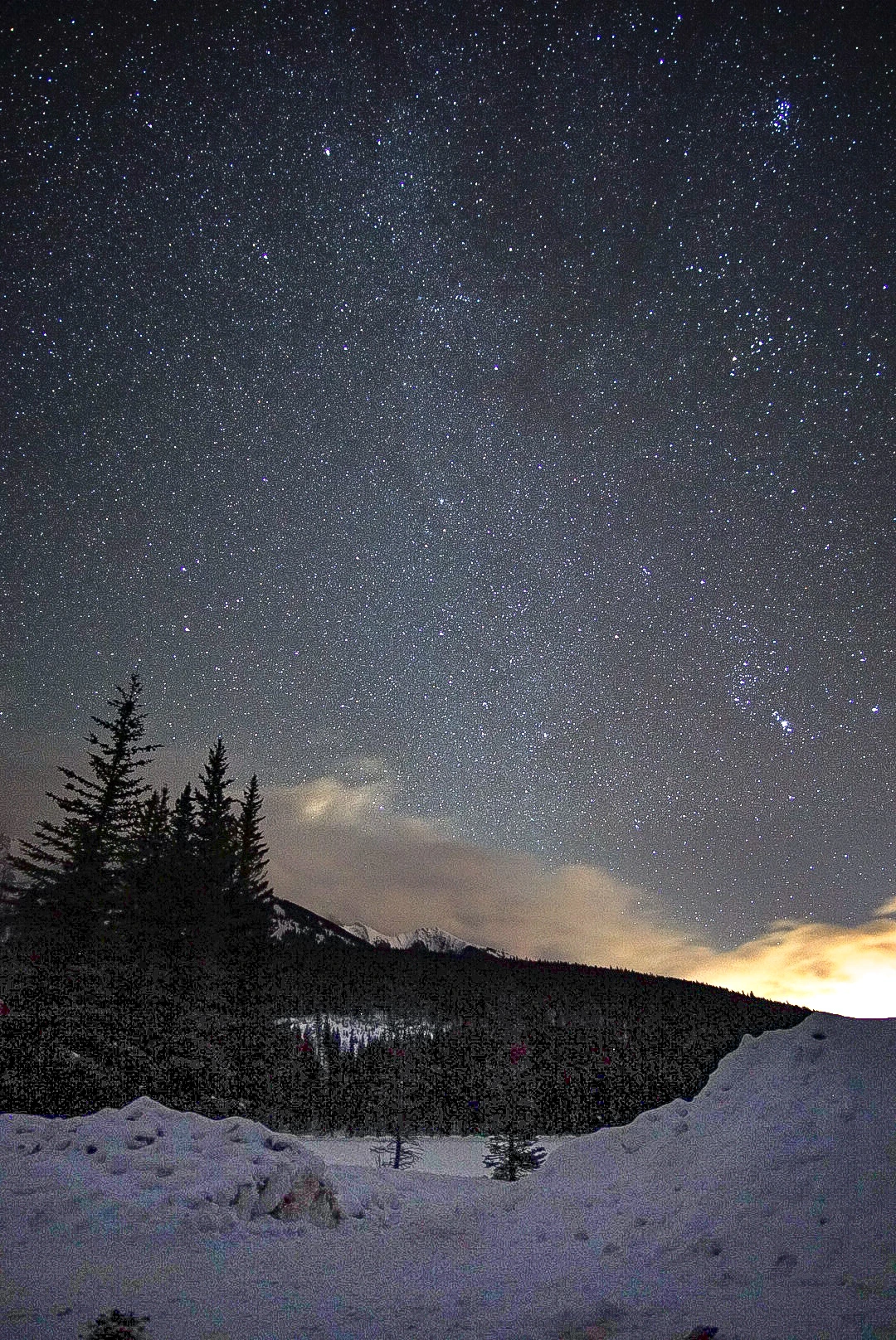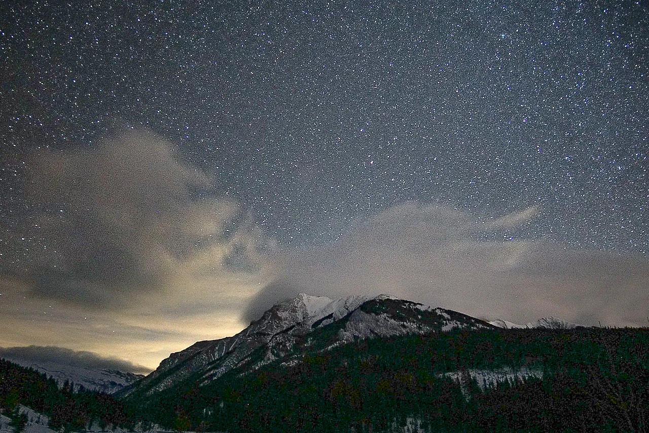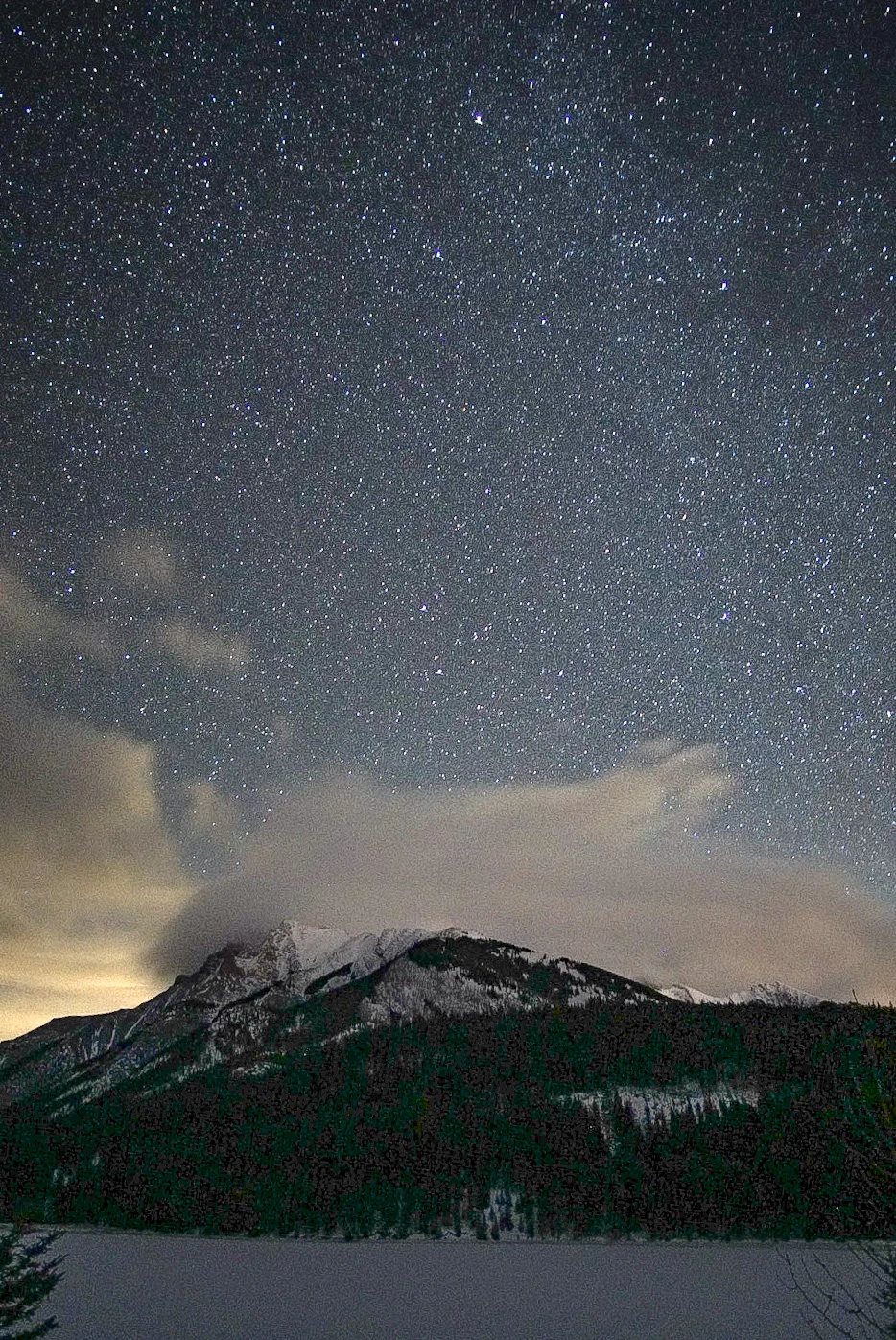 그리고 또 밤에 호수를 가면 좋은 점이 있다. 밴프의 호수들이 깊은 산속에 위치해 있는 만큼 주변이 굉장히 어두워서 머리 위로 쏟아질듯한 별들을 볼 수 있다. 밤에 밴프 다운타운에서 가까운 투잭 레이크만 가도 이 정도 별을 볼 수 있다. 사실 캔모어 살 때나 밴프 살 때나 둘 다 마을에서도 별을 많이 볼 수 있었고 고개를 들면 바로 별을 볼 수 있다는 것이 캐나다 생활 중에 가장 좋았던 점 중에 하나였다.