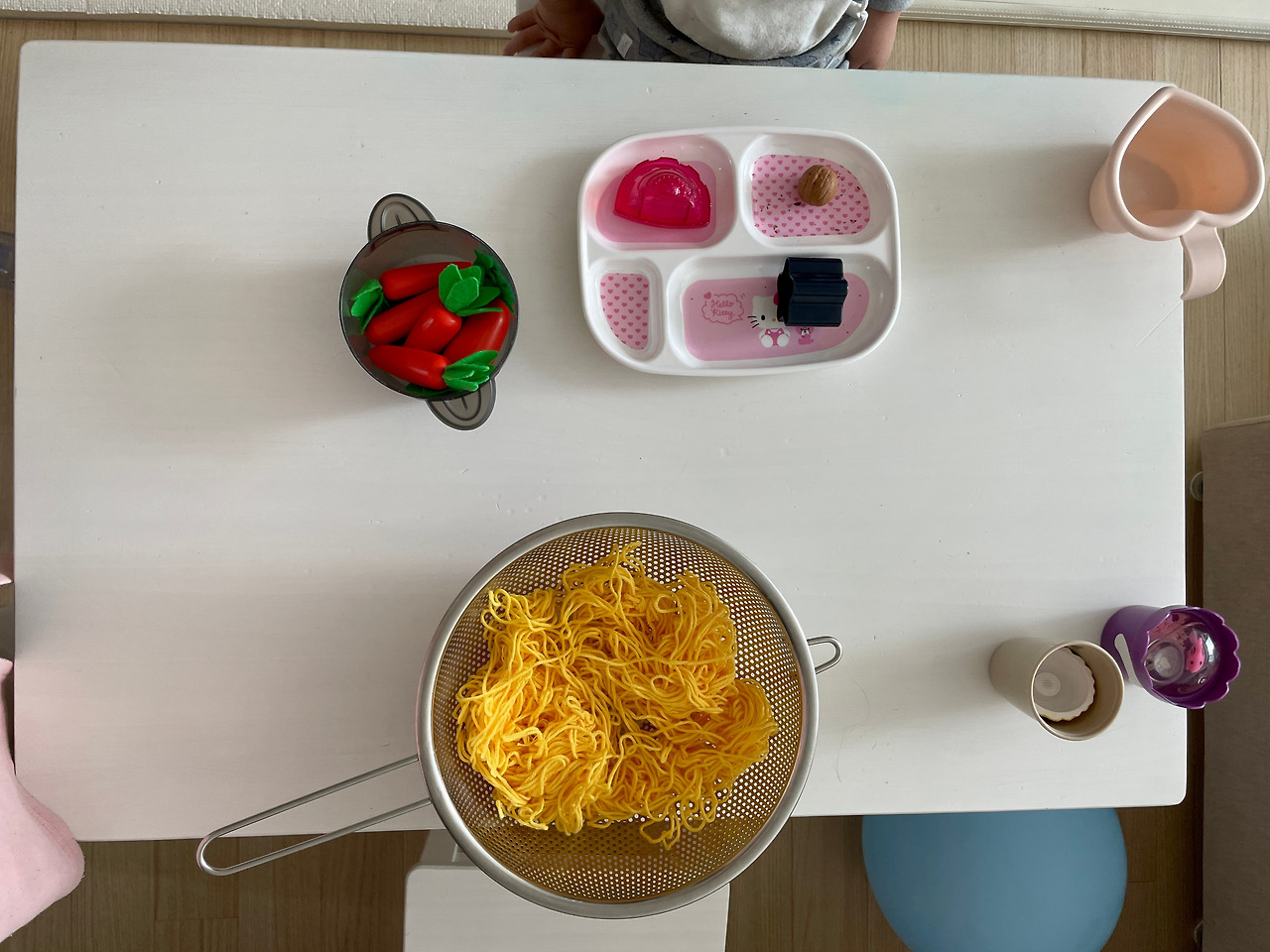 아기 책상 좁은 쪽에 나의 비빔밥이 들어있는 국그릇, 넓은 쪽에 아기 식판을 내려놓고 물컵 2개도 놓는다. 여기까지 오기도 험난했다. 첫째의 보채기 "엄마 책 읽어줘"와 둘째의 "응애응애(기저귀)"에 대응해 가며 밥 먹을 준비를 마쳤다.