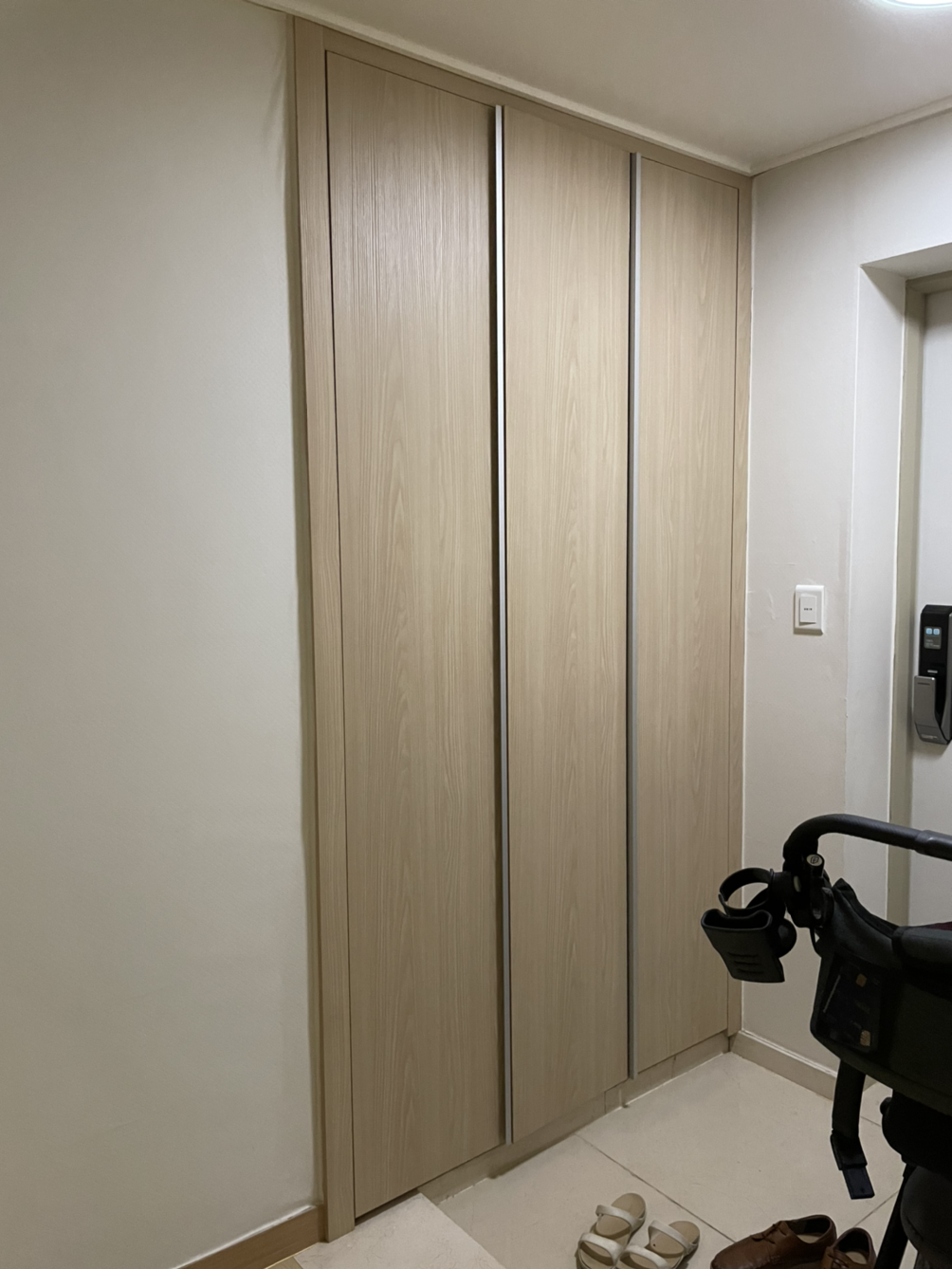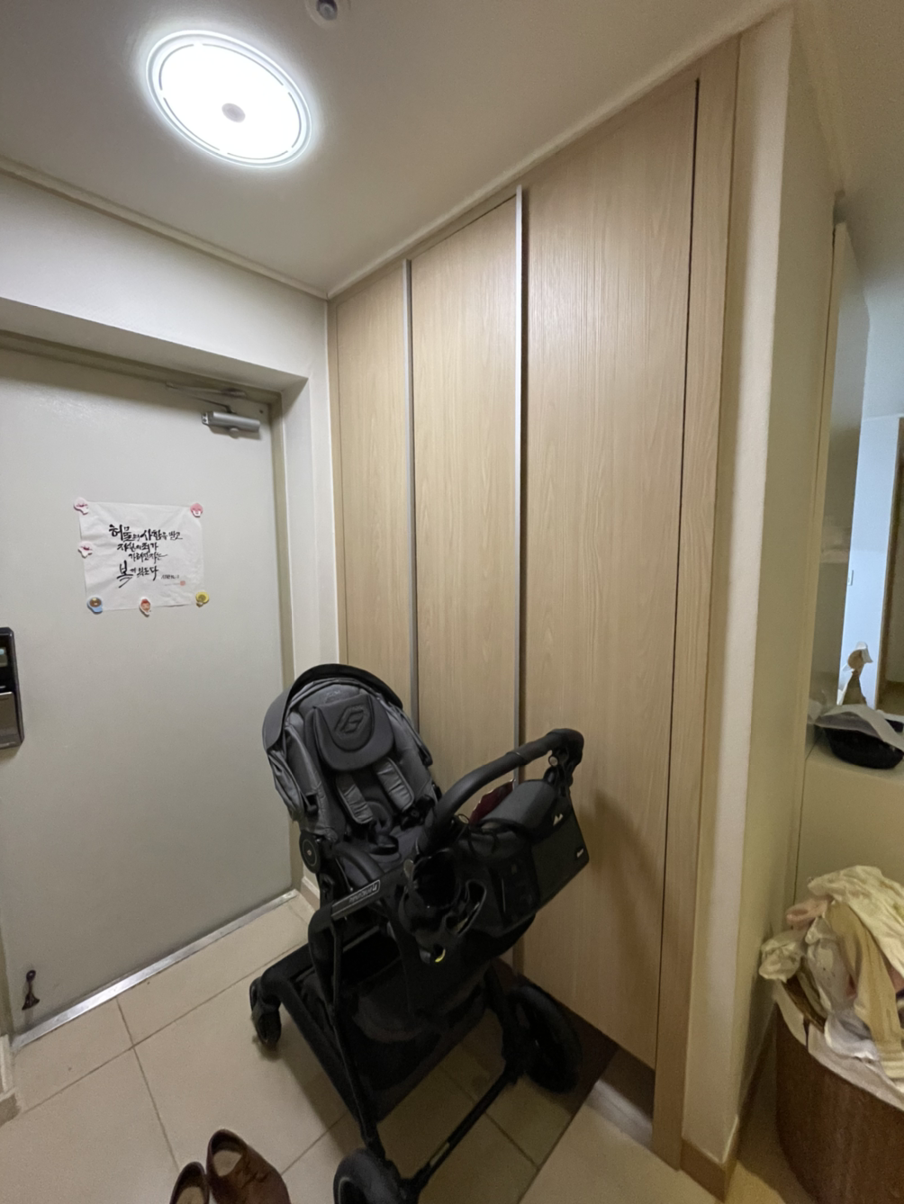 벤치도 놓고, 유행이라는 물방울 거울도 놓고. 현관에도 하고 싶은 게 많았다. 하지만 24시간 붙어 지내는 13개월 아기 데리고, '살면서' 보관이사 없이 할 수 있는 현관 리모델링의 현실적인 목표는 '톤 바꾸기'와 '중문 설치' 정도였다. 예산의 한계도 무시할 수 없었다.