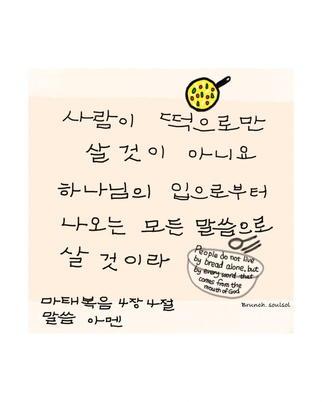 사얌이 떠구로만 살 것이 아니고! 하나님의 입으로부터 나오는 모-든 말씀으로 살게 되었어요.