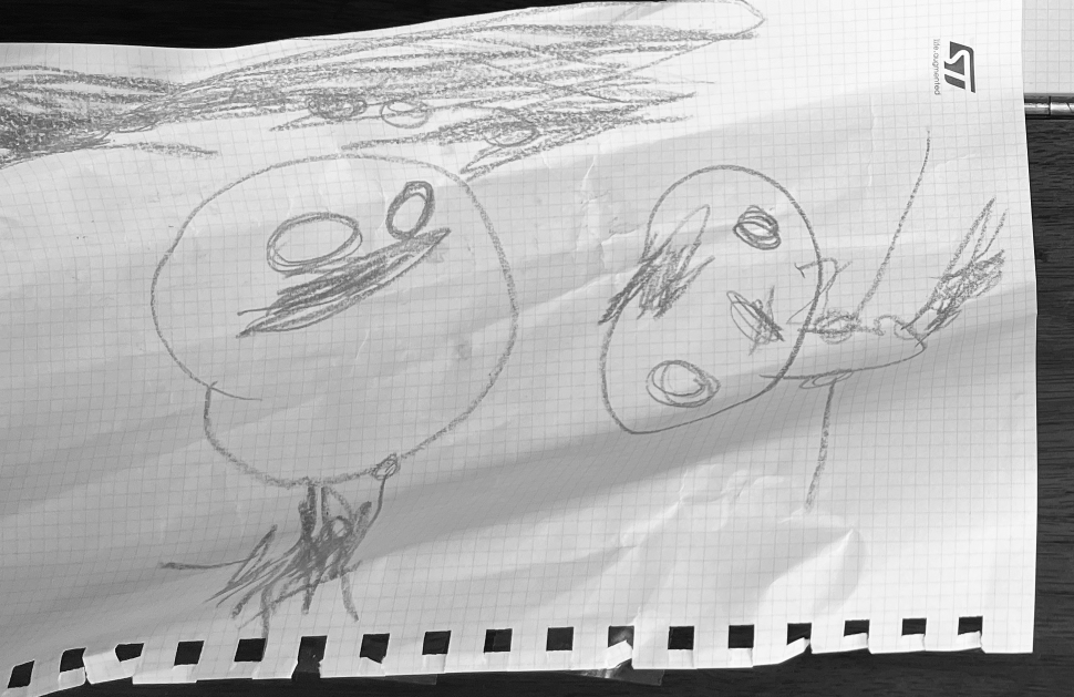 조그만 딸이 눌러쓴 삐뚤빼뚤한 글씨와, 더 조그만 둘째가 오종종한 손가락으로 그린 그림.