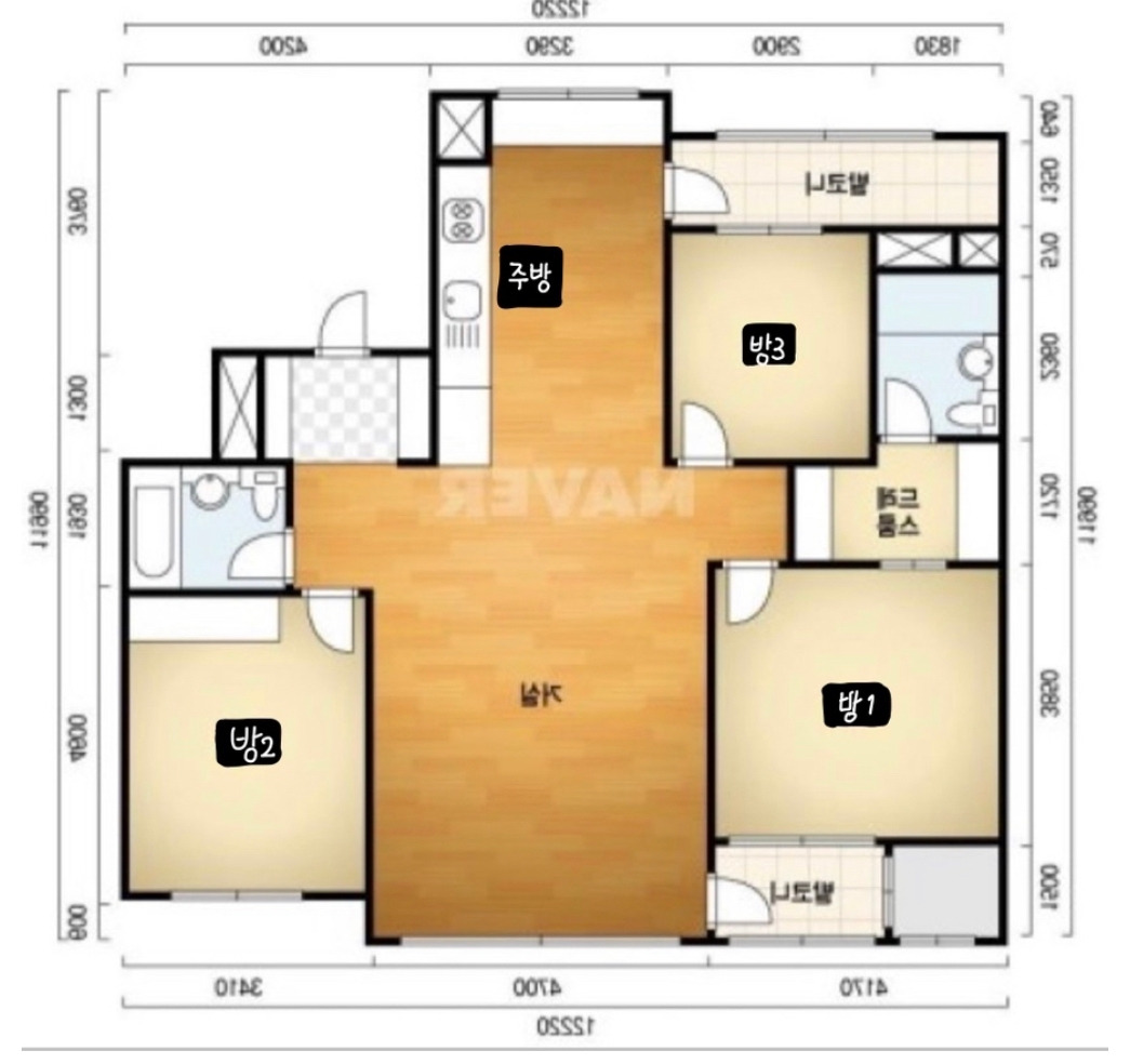 *다만 현실적으로 냉난방비 절약을 위해 현관에 중문 설치, 안방(도면상 방1)에 부부의 옷을 정리할 붙박이장 설치 정도는 진행하기로 했다. 중문 설치 비용은 대략 70만 원, 친환경 자재등급 E0 이상이면서 디자인이 깔끔한 붙박이장은 250만 원 선이었다.