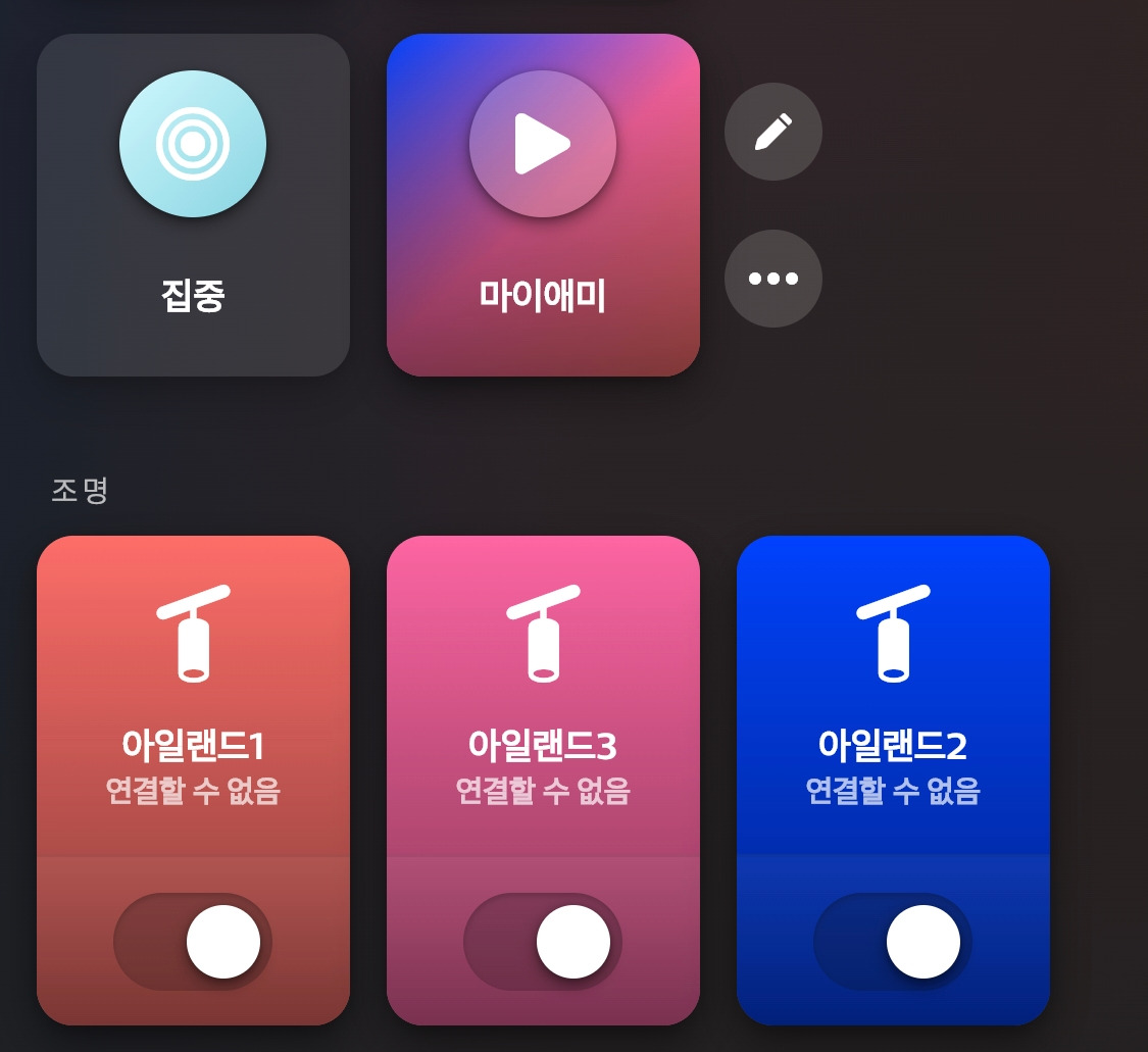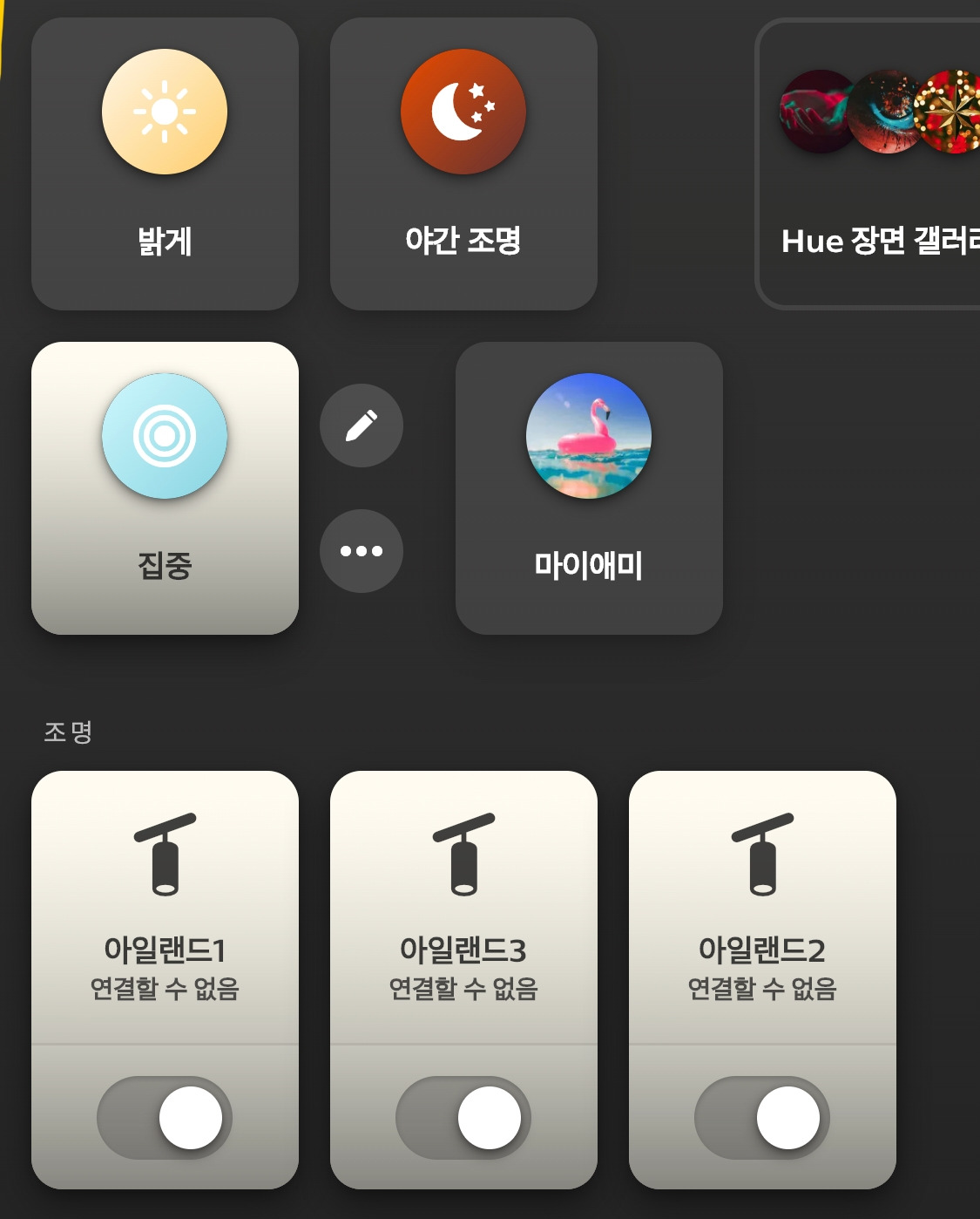 마지막 사진에 나오는 색깔까지는 필요 없다, 하는 경우 이케아 트뢰드프리 또는 필립스 휴 화이트 앰비언스 전구를 사면 값이 조금 더 저렴하다. 이들 스마트 조명만으로도 밝기와 온도 조절이 되고, 밝기와 온도 조절만으로도 공간의 분위기가 크게 좌우된다.