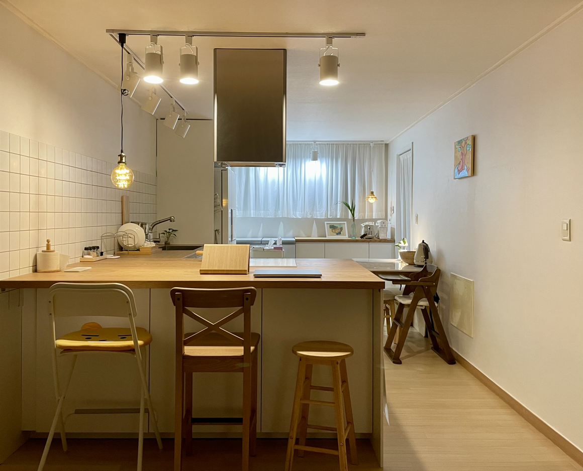 레일 조명의 길이를 직접 재서 주문하고, 등기구를 고르는 과정이 귀찮기도 했지만 내 취향을 온전히 담아서 조명을 구상할 수 있다는 것이 짜릿하기도 했다. 이렇게 직접 하나하나 알아보고 결정하고 준비하는 것이 성향에 맞다면(그리고 어느 정도 건강한 체력과, 육아를 하고 있는 경우 주변의 도움이 뒷받침된다면!) 반셀프로 인테리어를 진행하는 것도 나쁘지 않겠다.