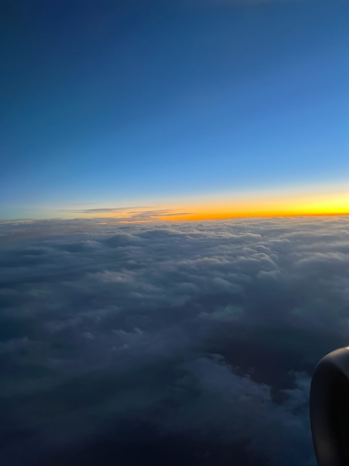 창문 너머로 펼쳐진 그 경이로운 광경은, 내가 겪은 친구의 죽음과 현재 마주한 어려움들로 가득 찬 불투명한 현실을 잠시나마 잊게 만들었다. 그 푸르스름한 하늘과 황금빛 노을 사이에서 어둠과 빛의 조화는, 마음 깊은 곳에 숨겨진 두려움과 무거운 짐을 덮어주었다. 이 순간, 나는 멕시코로의 여행을 통해 새로운 삶의 목적을 찾고, 깊은 자아성찰의 길을 걷기 위한 마음의 준비를 마쳤다.