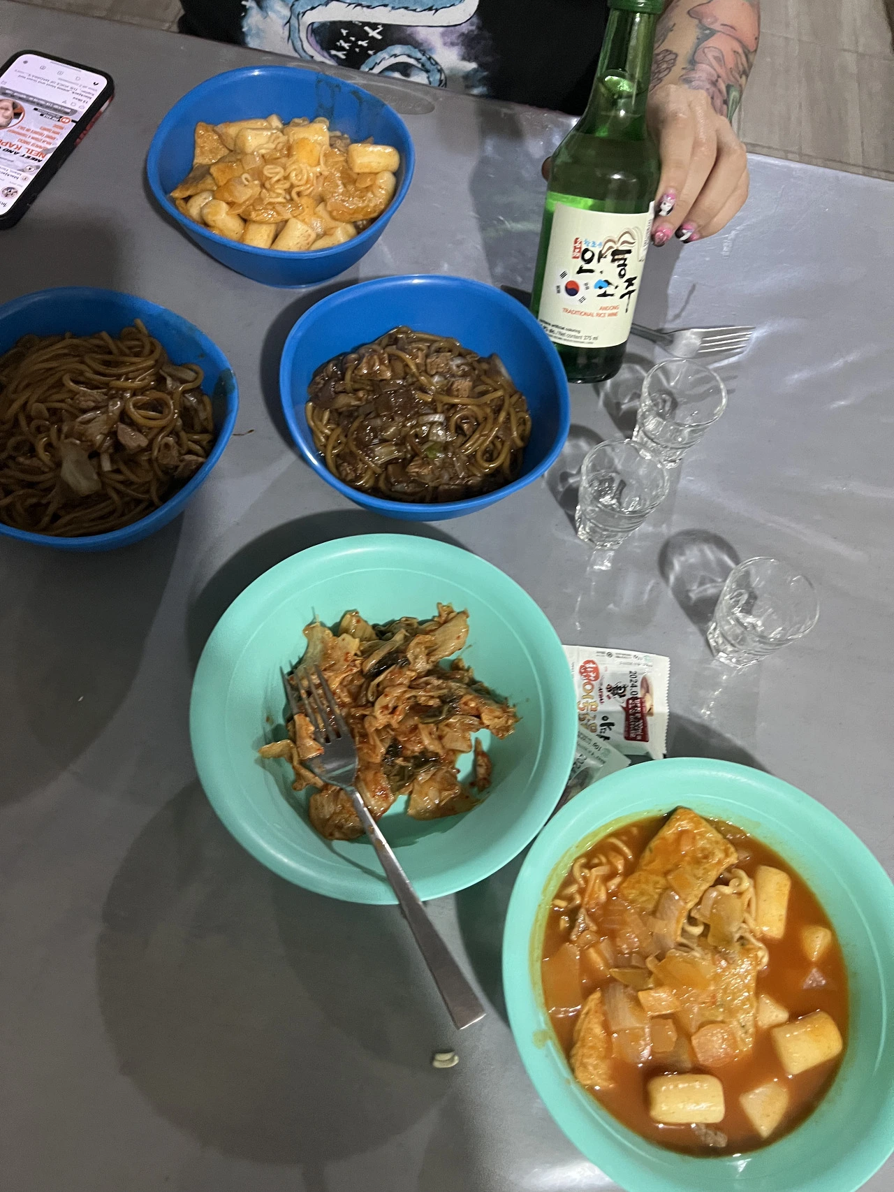 드디어, 차려진 식탁 앞에 앉은 친구들의 눈빛은 내가 만든 음식에 대한 기대감으로 반짝였다. 라볶이의 매콤한 맛, 자장면의 달콤하고 진한 맛, 그리고 김치의 시원하고 아삭한 맛이 어우러지는 순간, 우리 사이의 웃음과 대화는 더욱 풍성해졌다. 그렇게, 음식을 통해 한국과 멕시코, 두 문화가 한데 어우러지는 축제의 시간이 펼쳐졌다.