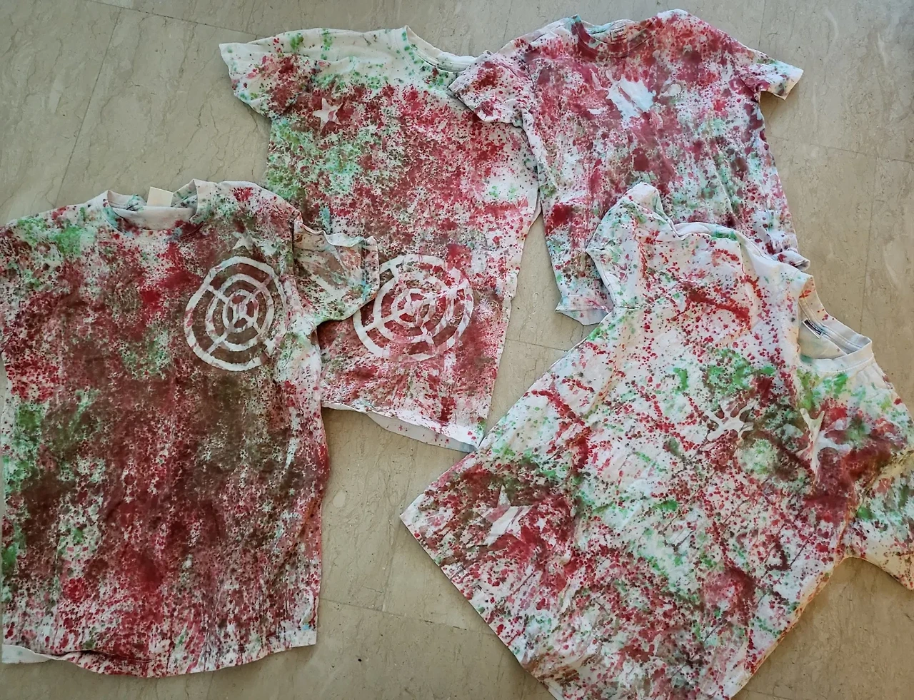 처음 갔을 때는 유행하는 타이다이 스타일로 잘 만들어서 아이들이 흡족해하면서 제법 잘 사용했는데 다음번 작품은 좀비에게 무자비하게 습격받은 스타일이라 입고다니기엔 누군가 괜찮냐고 물어올 것 같은... 장롱속 고이 모셔두고 있습니다. 아마 옷장 정리 한번 하면 쓰레기통행이 되겠죠...??;;