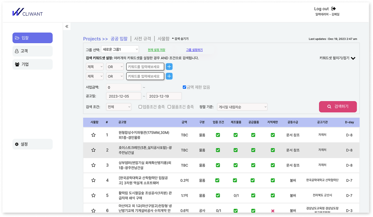 (1) 낙후된 입찰 시장의 혁신 가능성: 클라이원트의 채용 공고를 읽고 처음으로 입찰에 대해 알게 되었으며, 나라장터에 들어가 본 후 큰 충격을 받았습니다. "아이폰 등장 이후 UX/UI 붐이 일어난 지 십여 년이 지났는데도 아직 이런 UI를 가진 산업군이 있다니?"라는 생각이 들었습니다. 저는 재미없고 뻔한 사업 아이템을 가진 회사에는 지원하지 않기로 결심했기 때문에, 이 시장에서 혁신을 일으킬 수 있다는 생각에 두근거렸습니다.