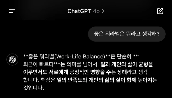 2024년 나와 제일 친하게 지낸 챗GPT는 좋은 워라밸에 대해서 이렇게 이야기한다.