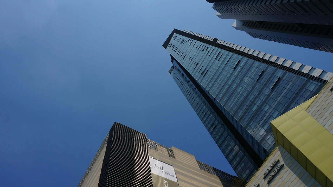 빌딩 숲 속 빼꼼히 보이는 하늘을