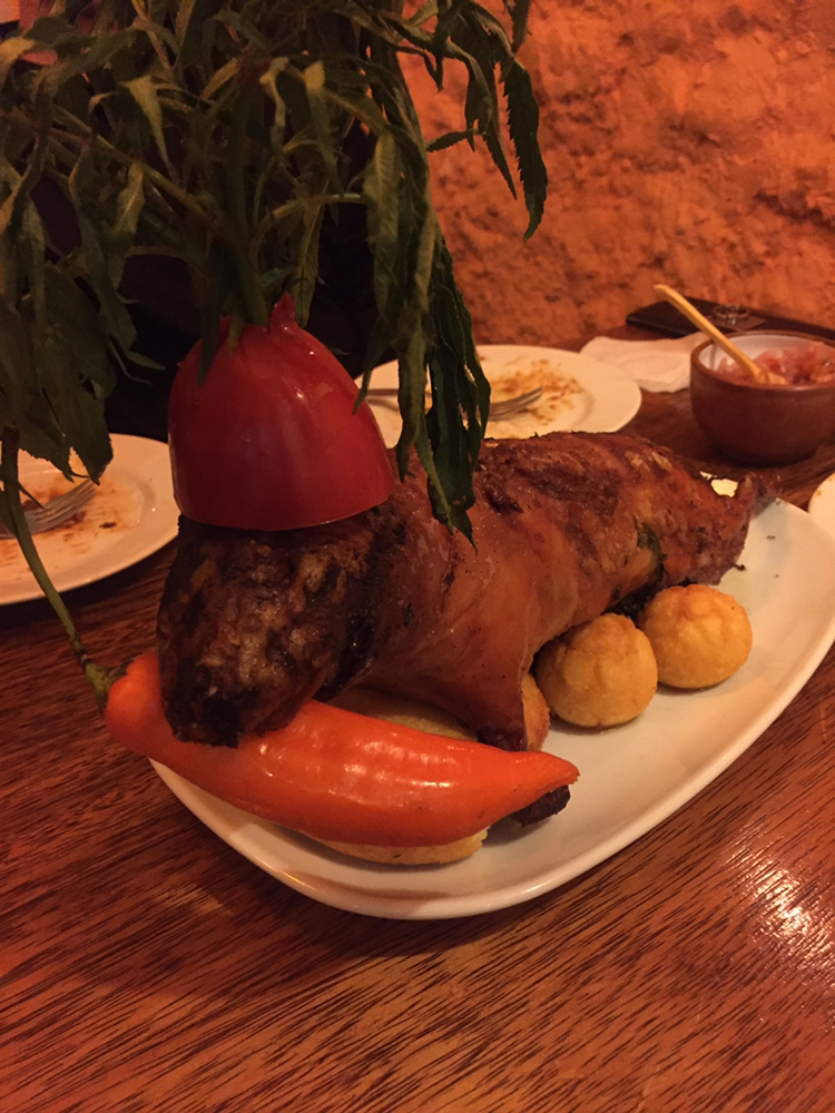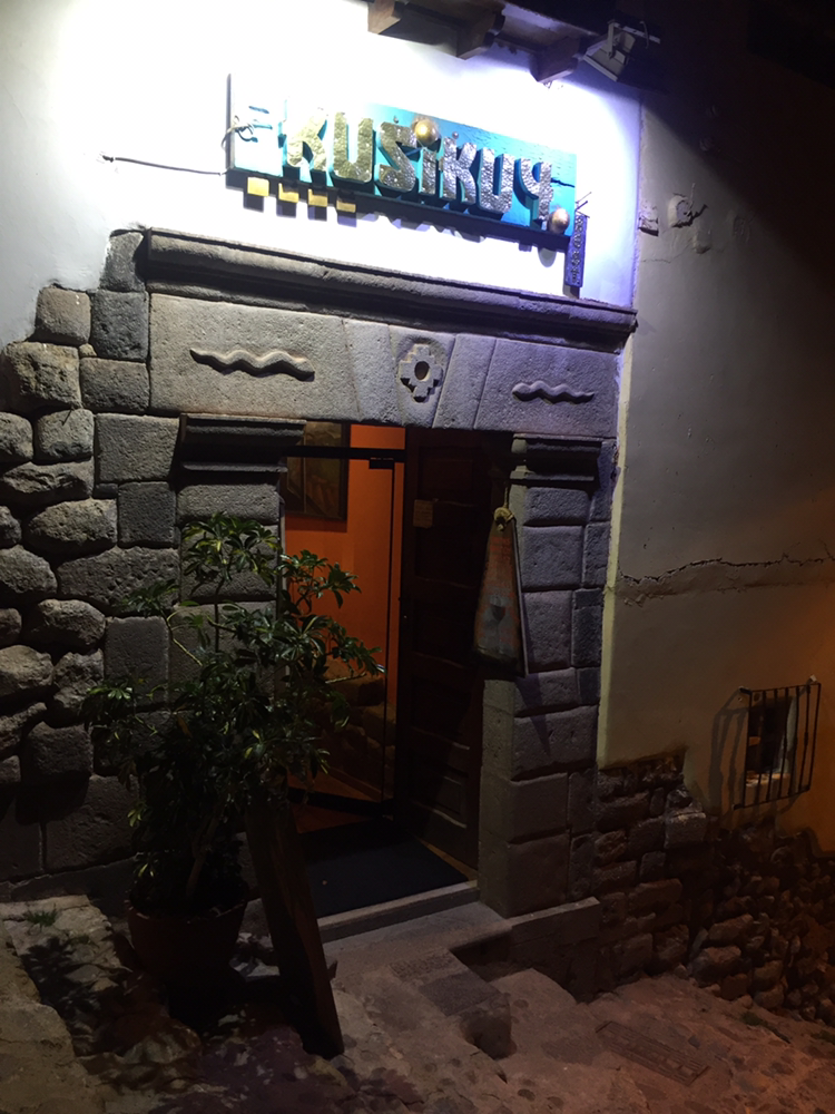 엘 푸마보다 위에 있는 꾸시꾸이(kusikuy) 셋이서 알파카 고기랑 꾸이 한마리를 시킴. 양은 적당했고 꾸이는 기니피그 구이?! 인데 약간 냄새 못잡은 족발같은 냄새가 나긴 했지만 먹을만은 했다.. 하하 비쥬얼은 하하하하
