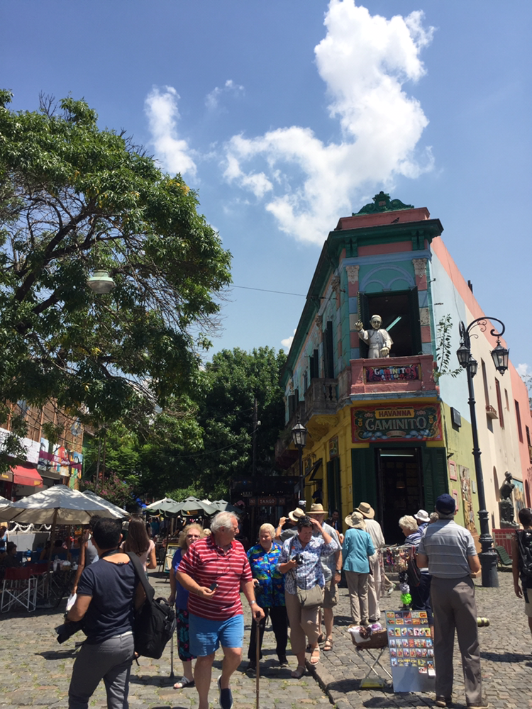 잤다. 12시 좀 넘어서 숙소를 나와 버스를 타고 까미니또로 간다. 듣던대로 관광객을 위해 조성한 가짜거리 같은 느낌이지만 그래도 화려한 색상과 탱고와 노천카페가 있으니 좋았다. 거기서 밥먹으면 호갱이라고 누가 그랬지만 나는 그냥 호갱하는것도 좋아 보여서 탱고를 보며 점심을 먹었다. 같이