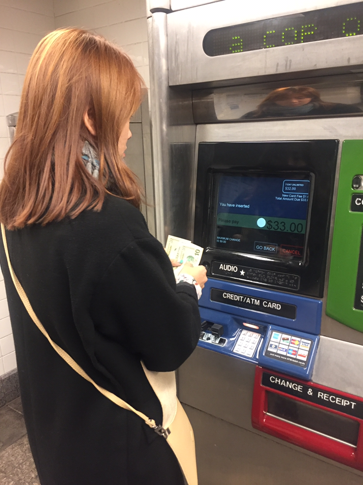 이번엔 지하철을 타고 가보기로 했다! 어차피 일주일쯤 있을거라서 언리미티드 탑승권 7일짜리를 구매, 32달러+카드값1달러 해가지고 33달러였다. 첨에 기계에 50달러짜리를 넣었는데 계속 뱉어내서 난감했는데 알고보니 9달러이상 잔돈 못줘 라고 화면 아래에 써있었던.. =_= ㅋ10달러 짜리로 구매 성공.