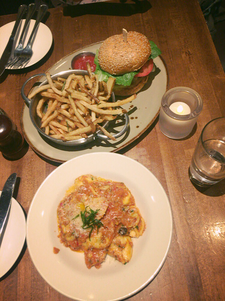 제인버거랑 머쉬룸 토르텔리니를 주문했다. 버거가 18달러 토르텔리니가 15달러쯤.. 나도 적게 먹는 편은 아닌데 역시 미국은 미국인지 무조건 일단 스몰을 시키는게 정답이었다. 양이 생각보다 많음ㅋㅋ