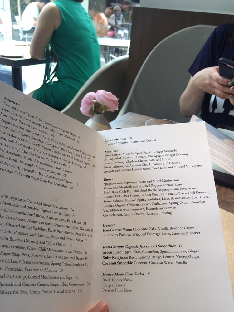 그렇게 아침을 먹고 좀 쉬다가 어제 예약해놓은 장조지(Jean Georges) 레스토랑으로 간다. 미슐렝 쓰리스타라고 했던가. 에피타이저, 식사, 디저트 일케 코스로 나오는데 점심에 38달러 라고 한다. 고급지고 음식도 맛있었으니 요정도면 합리적인 가격!