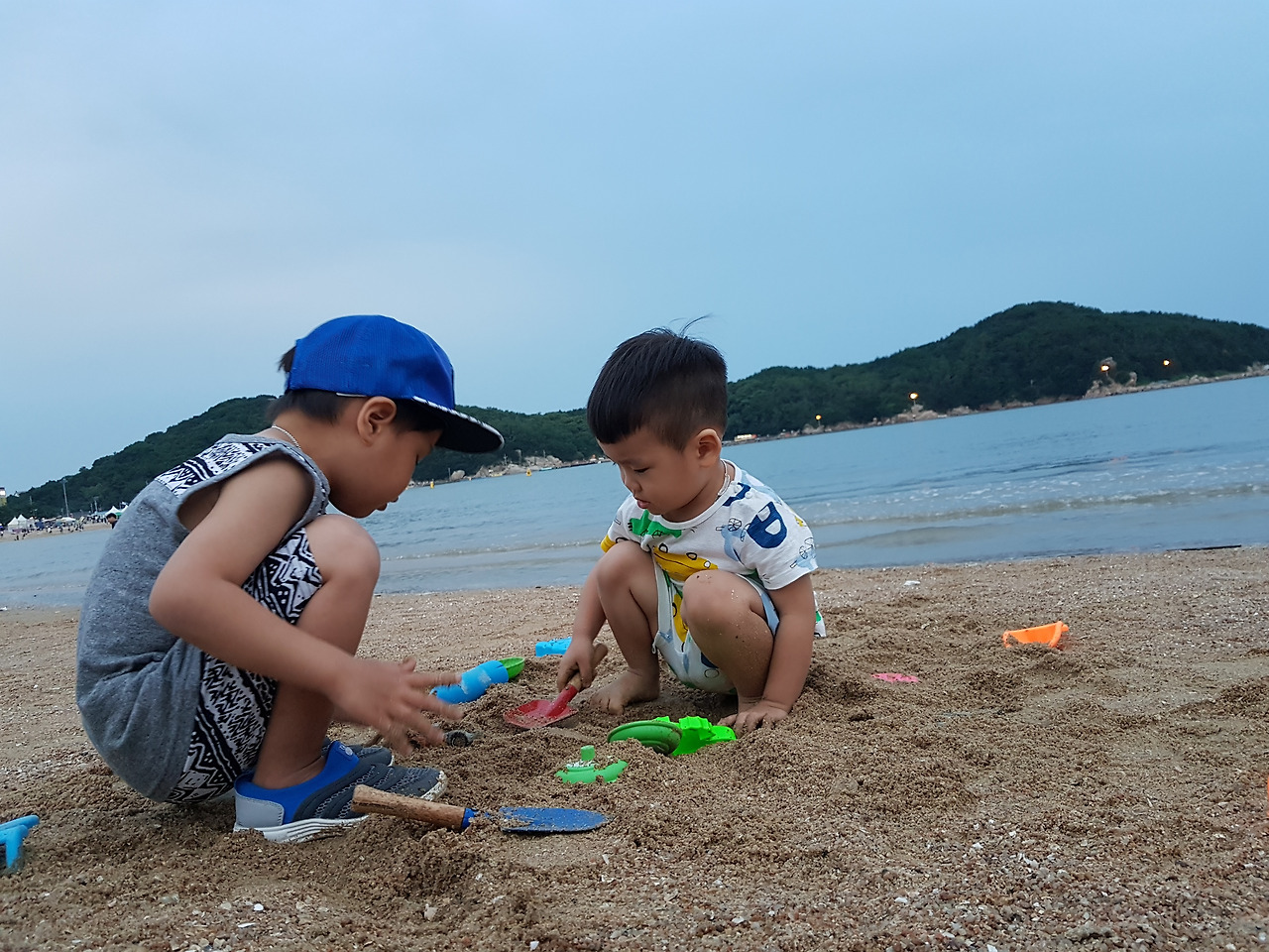 애들은 신났다. 워터파크에서도 한참을 놀고 바닷가 모래에서도 한참 신나게 논다. 뭐하나 봤더니 장난감 자동차를 땅에 묻은 다음 다시 파낸다. 그리고 외친다. "오래된 자동차를 발견했어!!" ㅋㅋㅋㅋㅋ 그걸 계속 반복한다.. 너무웃겨..