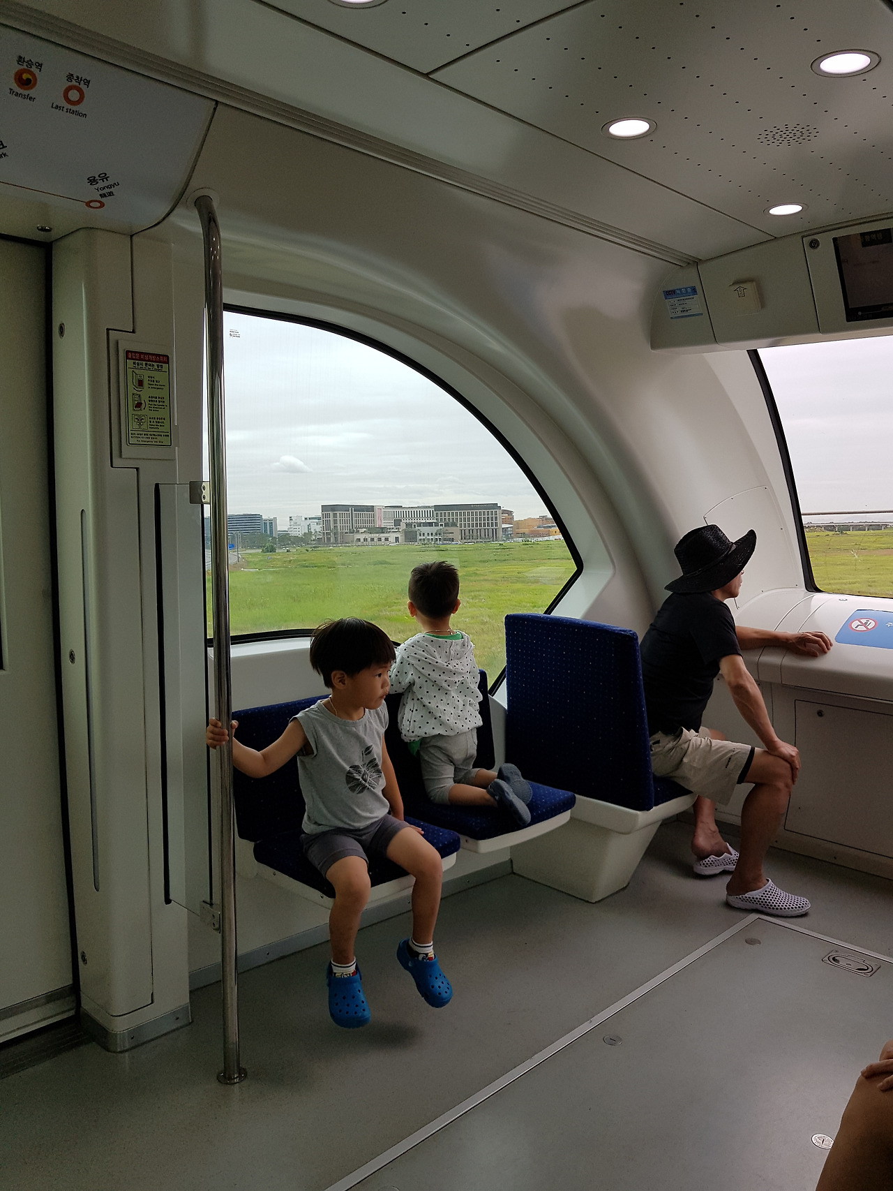 다음날엔 근처에 있는 자기부상열차를 타러갔다. 왜 아가들은 기차, 자동차, 포크레인, 비행기 등등 수송기관에 열광 하는가.. 그냥 역동적인게 좋은 걸까 딸내미조카는 없어서 모르겠지만 남아들은 보통 이런듯..