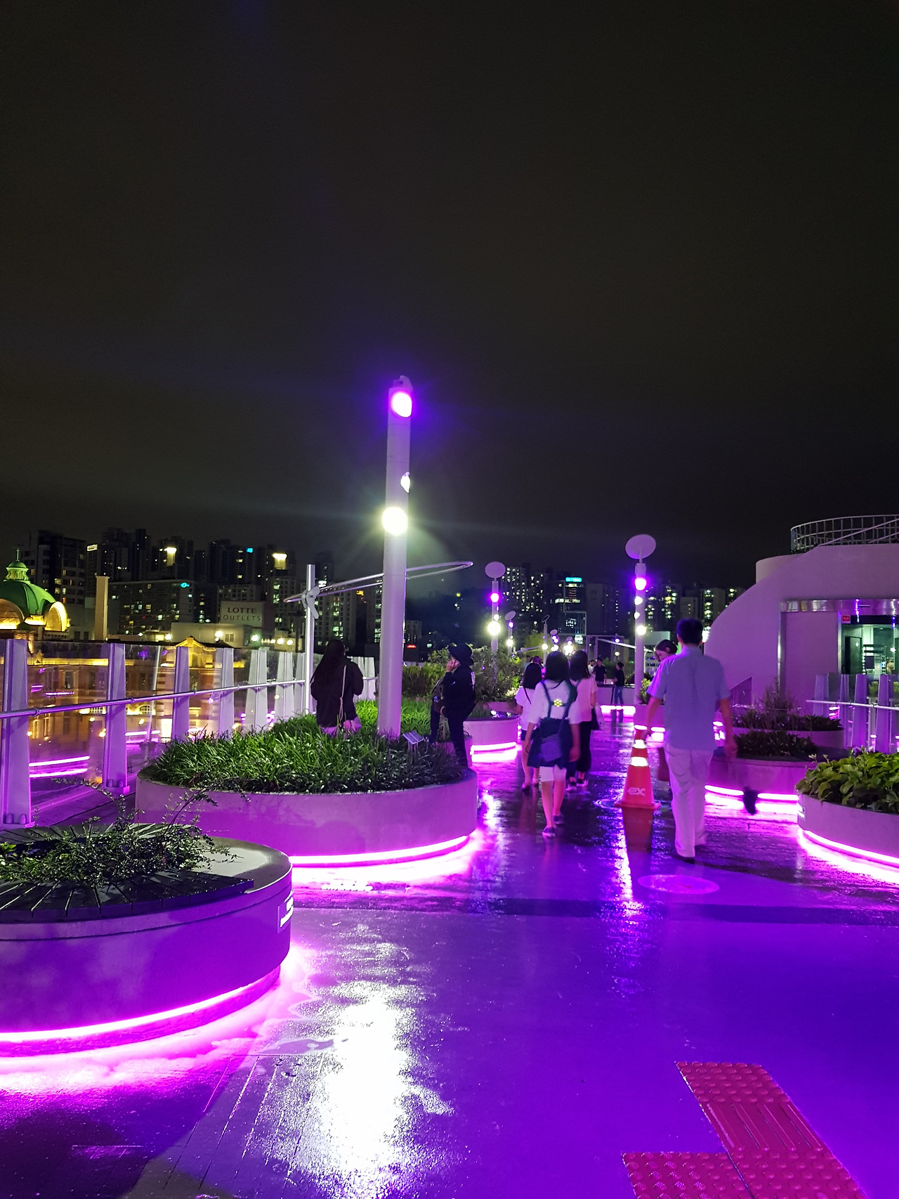왜 대체 왜 이렇게 국내 공기관은 형광색 조명을 좋아하는 것인가... 뉴욕 하이라인 갔다왔다고 허세부리는건 아니지만.. 그래도 그 비슷한거 생긴다길래 그리고 원순시장님이 만든다길래 기대 쬐끔 했단 말이다.. ㅜㅜ 그냥 깔끔..?하긴 했지만 시멘트 바닥에 동글동글 시멘트 화분에 형광 보라색 조명은.. 나무 데크라도 깔거나 뭐 그럴 순 없었던 걸까... ㅜㅜ 후 안타깝..