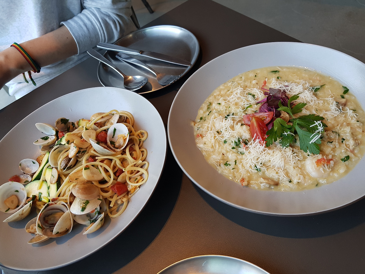 밥도 맛있었다! 피자파스타리조또 전부 2만원대로 좀 비싸긴 했지만 공간이 크고 음악도 좋아서 공간 이용비로 생각하면 나쁘지 않았다.