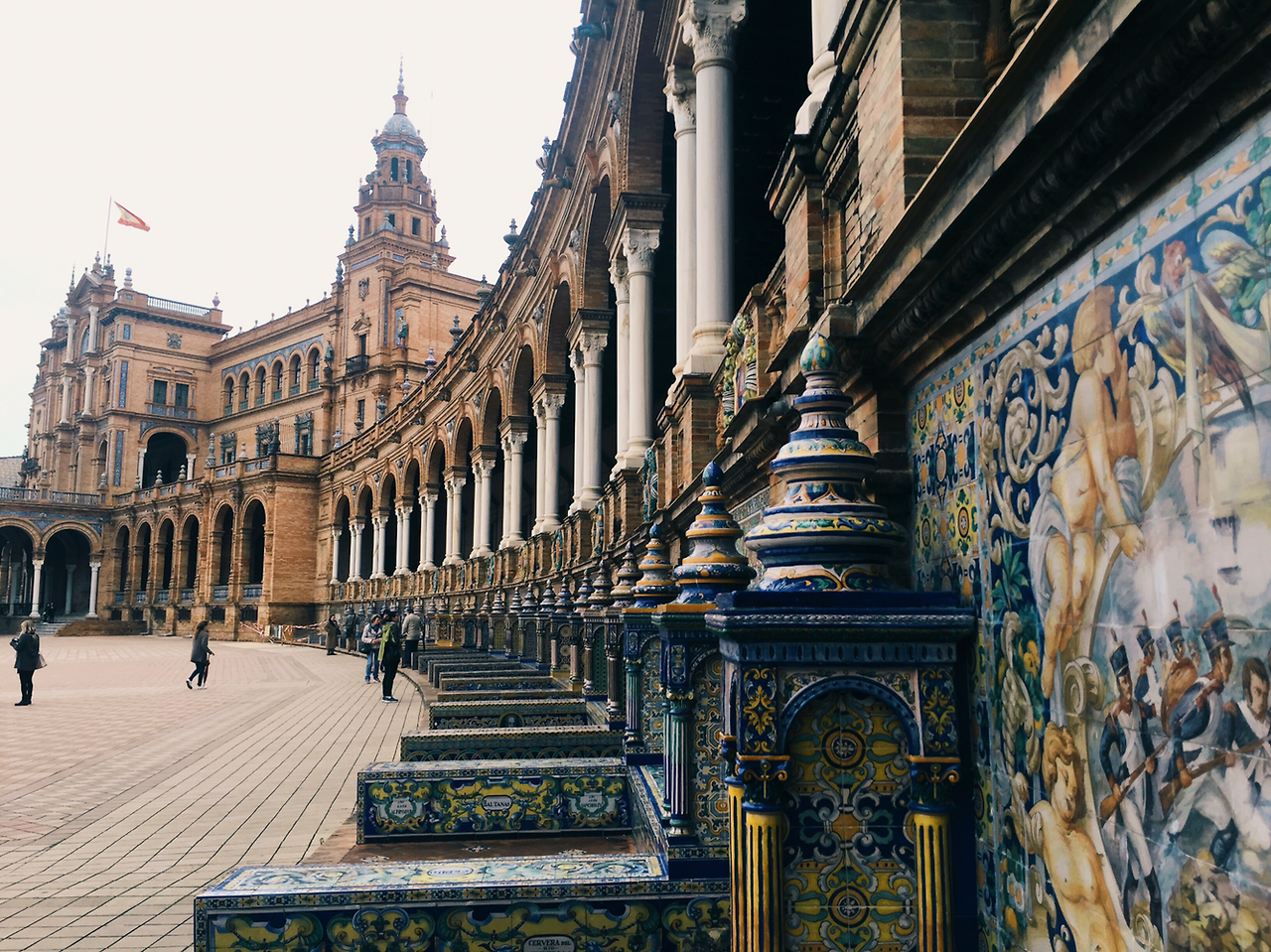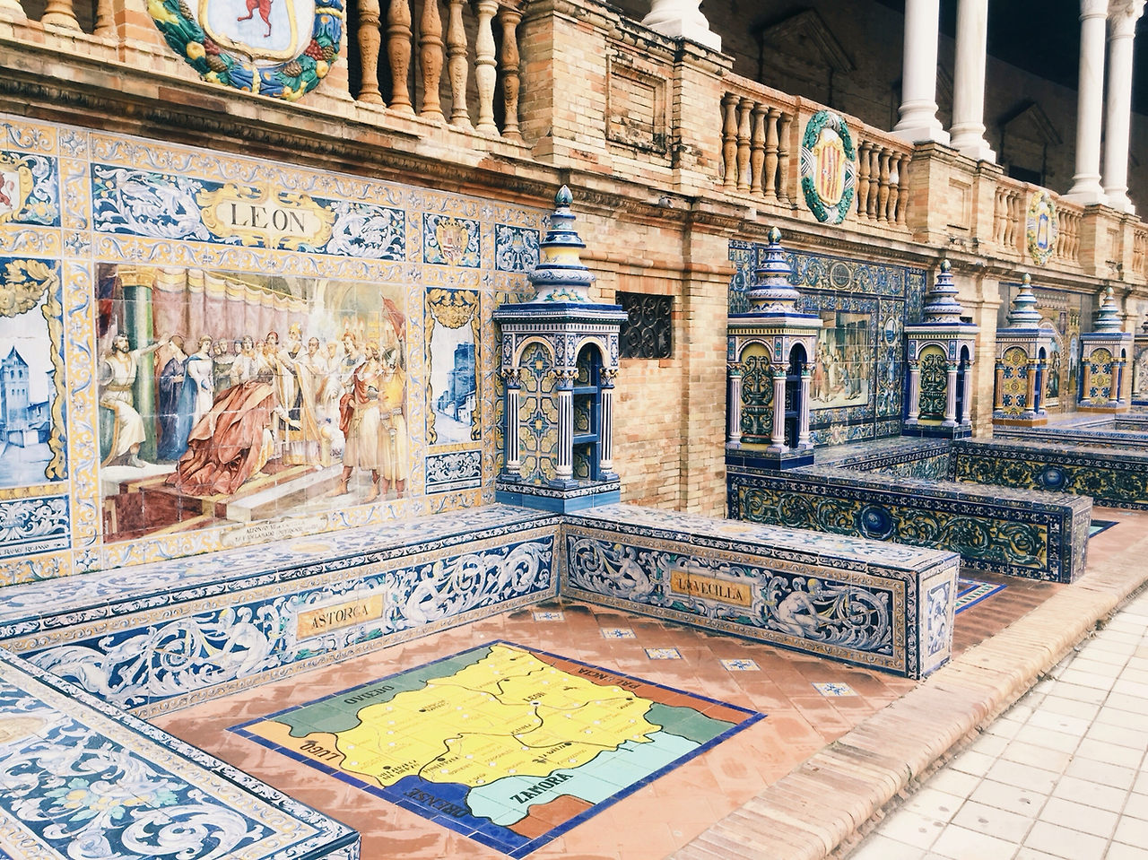 동그란 반원 모양의 스페인 광장 안쪽에는 스페인의 도시들이 한칸 한칸 표현되어 있다. 각 도시에 얽힌 그림들, 도시마다 전혀 다른 분위기의 색들이 신기하다.