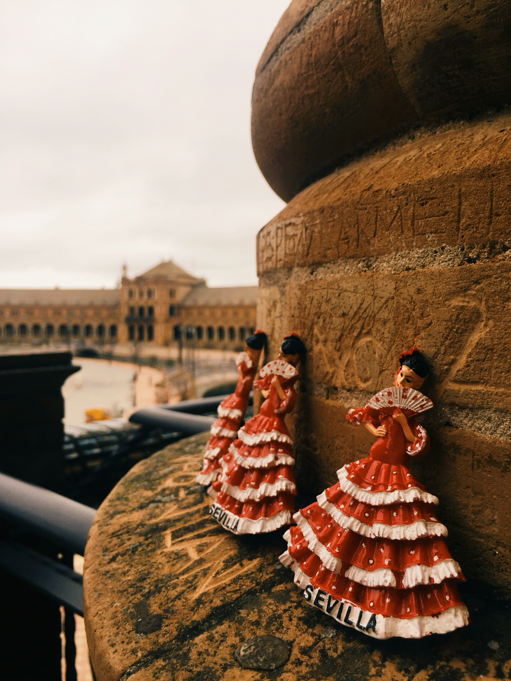 광장 곳곳에는 자석이나 부채같은 기념품을 파는 사람들이 보인다. 친절한 청년에게서 구매한 플라멩고 아가씨. 광장과 너무도 잘 어울린다.