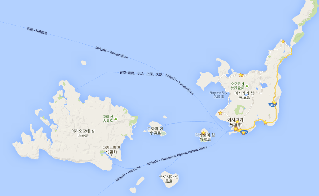 라고 위키백과에 나와있긴 하다. 일단 지도를 보면 그래도 이시가키 섬이 막 그렇게 작은 섬은 아니다. 렌트를 해서 다니면 오른쪽 위에 있는 뭔가 경치 좋은 곳도 갈 수 있고 여기저기 숨은 조용한 해변도 많고 멋진 섬이다. 게다가 오키나와 본섬보다 물가도 싸고 배로 20분~1시간 거리에 개성있는 섬들도 있다.