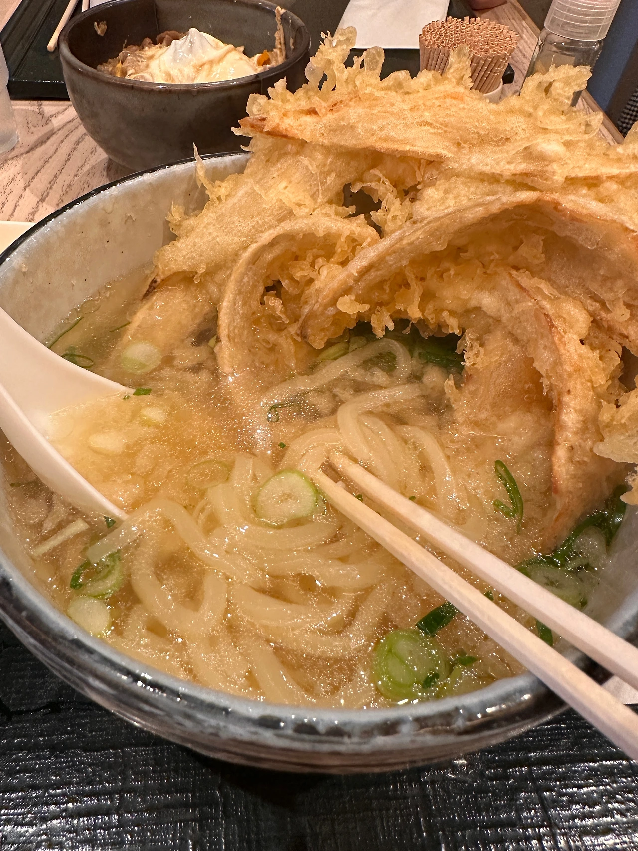 첫끼는 우동! 해장에 제격이다. 텐진 메인 거리 각종 맛집에 줄을 서있는 사람들을 지나 조금만 벗어나면 그래도 대기 없이 먹을 수 있는 맛집들이 있다. 특이하게 우동면이 얇고 쫄깃쫄깃, 국물도 진하다.