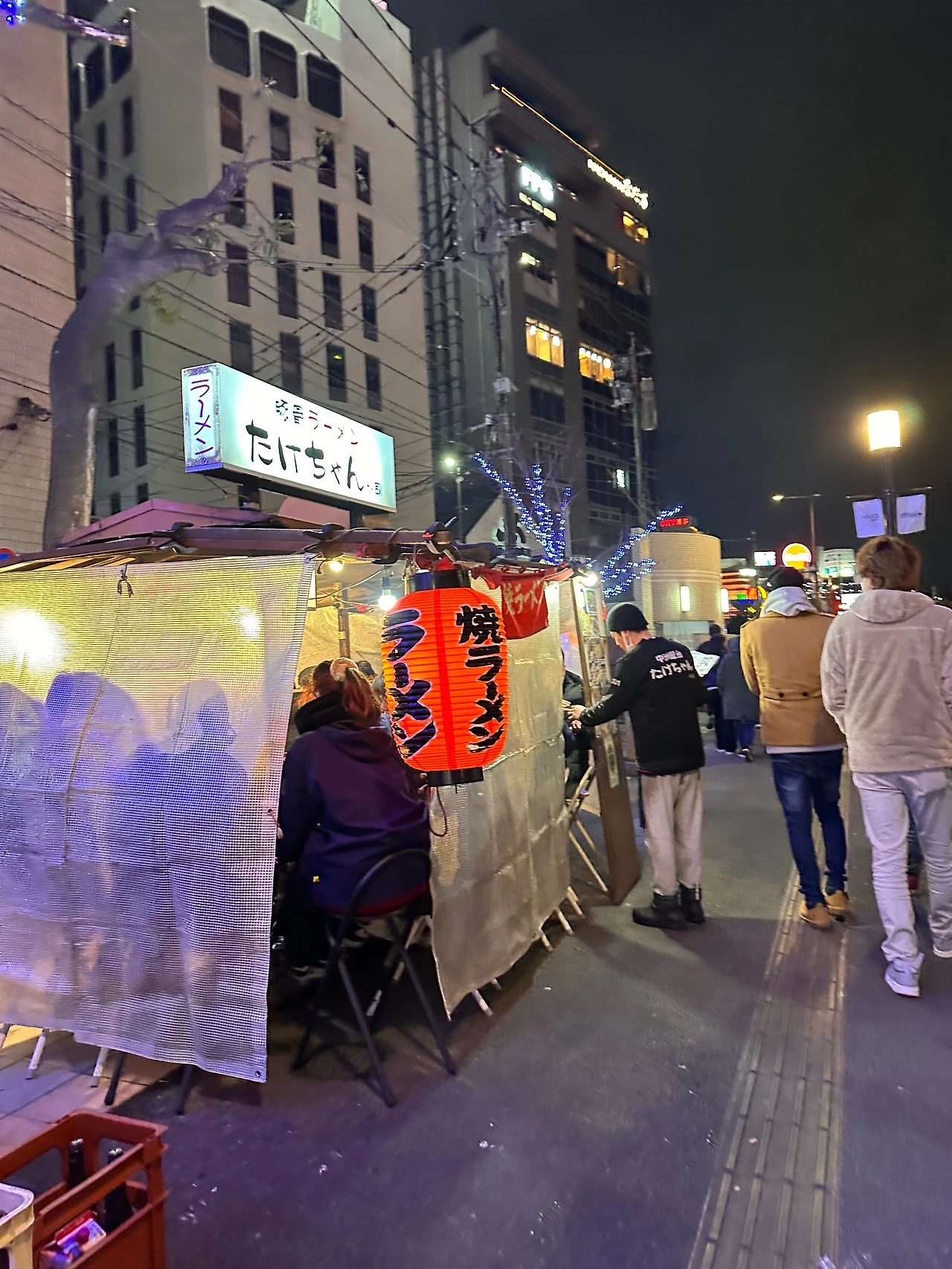 저녁이 되고 배가 슬슬 고파서 나카스로 가보기로 했다. 포장마차 거리도 구경하고 천년야시장 같은 게 열린다고 해서 고것도 보고 카운트다운도 있다고 하니 근처 이자카야도 열었겠지 하고 가봤다.
