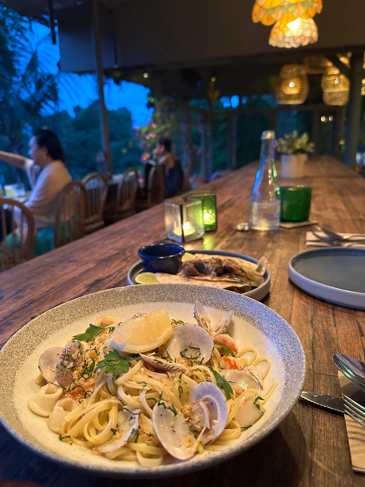 저녁엔 근처에 루프탑 레스토랑이 있다고 해서 찾아갔는데 1) 일단 뷰가 좋고 2) 음식이 모두 엄청 맛있었다! 예약하고 오는 분들이 더 많아보였고 가격대는 좀 있었지만 (파스타 14만루피아) 그럴만 했다 맛이 일품. 내일 길리로 떠나서 네밤자고 다시 우붓에 오는데 그때 또 오자고 할 정도.