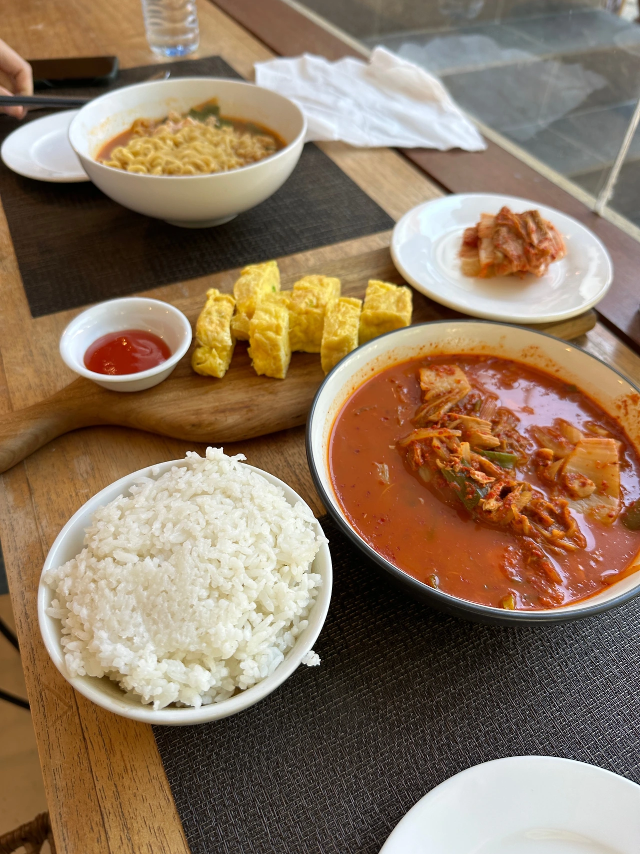 어젯밤 늦게까지 마셔된 여파로 조식은 패스하고 점심즈음 일어나 한식으로 해장을 해본다.. 김치찌개는 너무 짰다 흑..