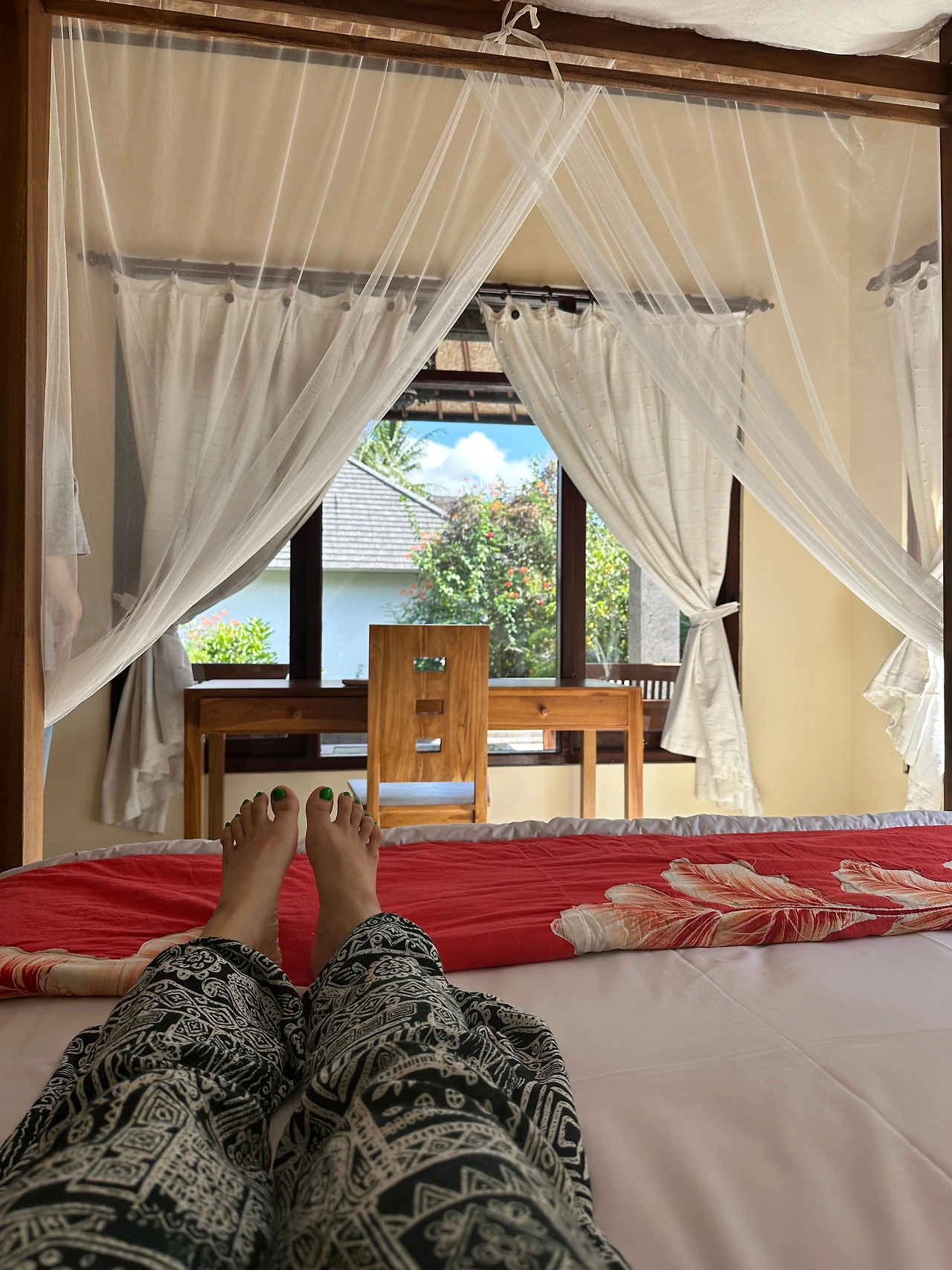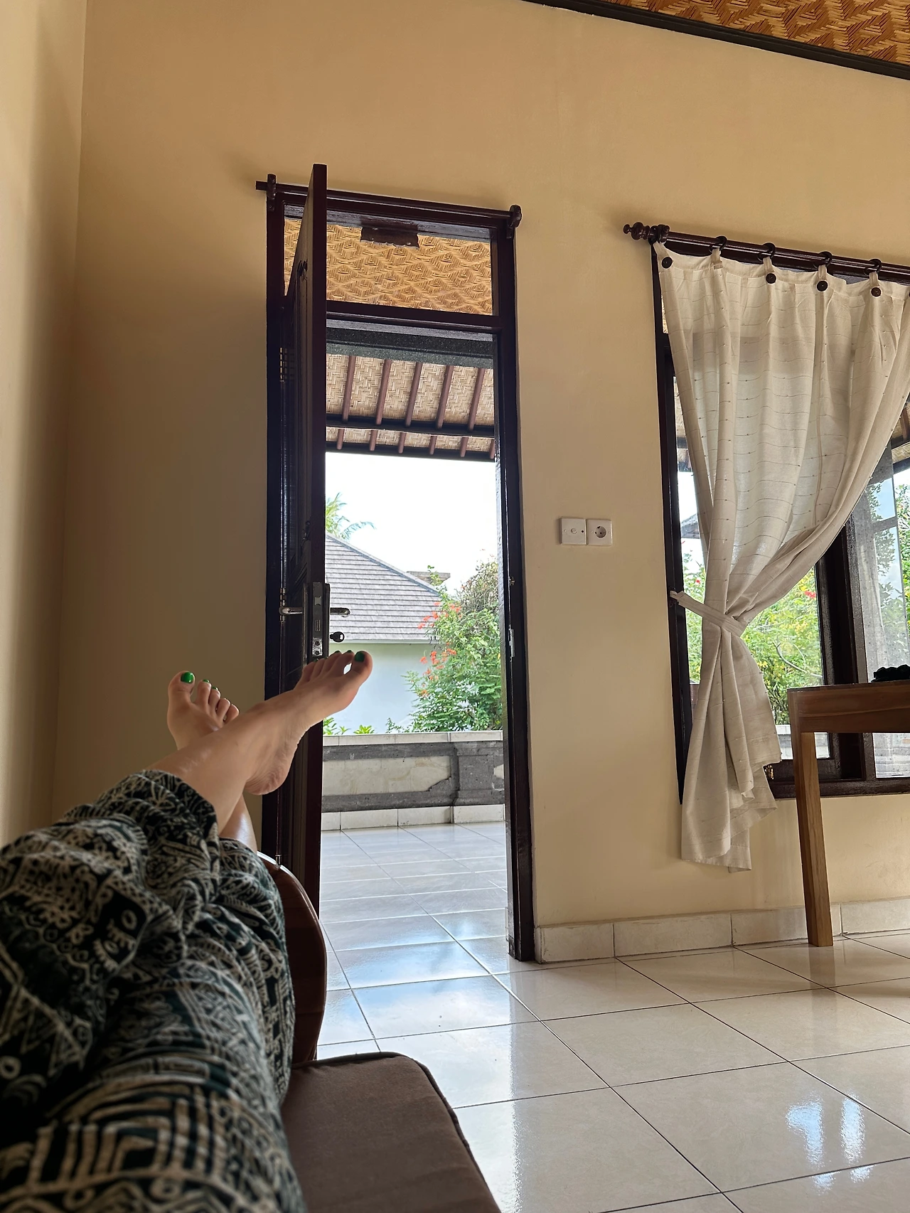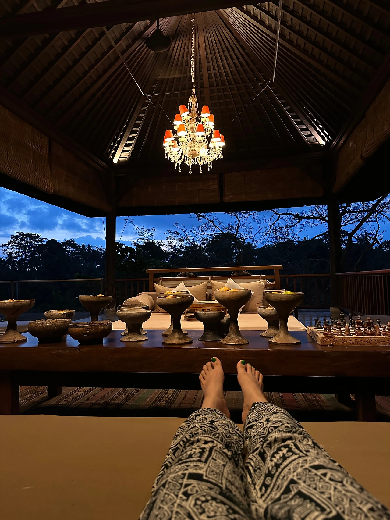 12시 체크아웃을 하고 우리가 너무 좋아했던 리조트 로비에 누워 여유를 부려본다. 고요한 정글 정원.