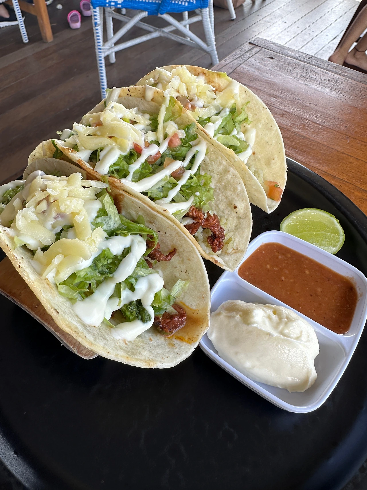 그러다 슬슬 배가 고파서 밥먹으러 밖으로. 어제 봐뒀던 타코집으로! 타코랑 샐러드랑 시켜서 냠냠. 맛있긴 했는데 길리 타코집이 좀 더 맛있었다 후후
