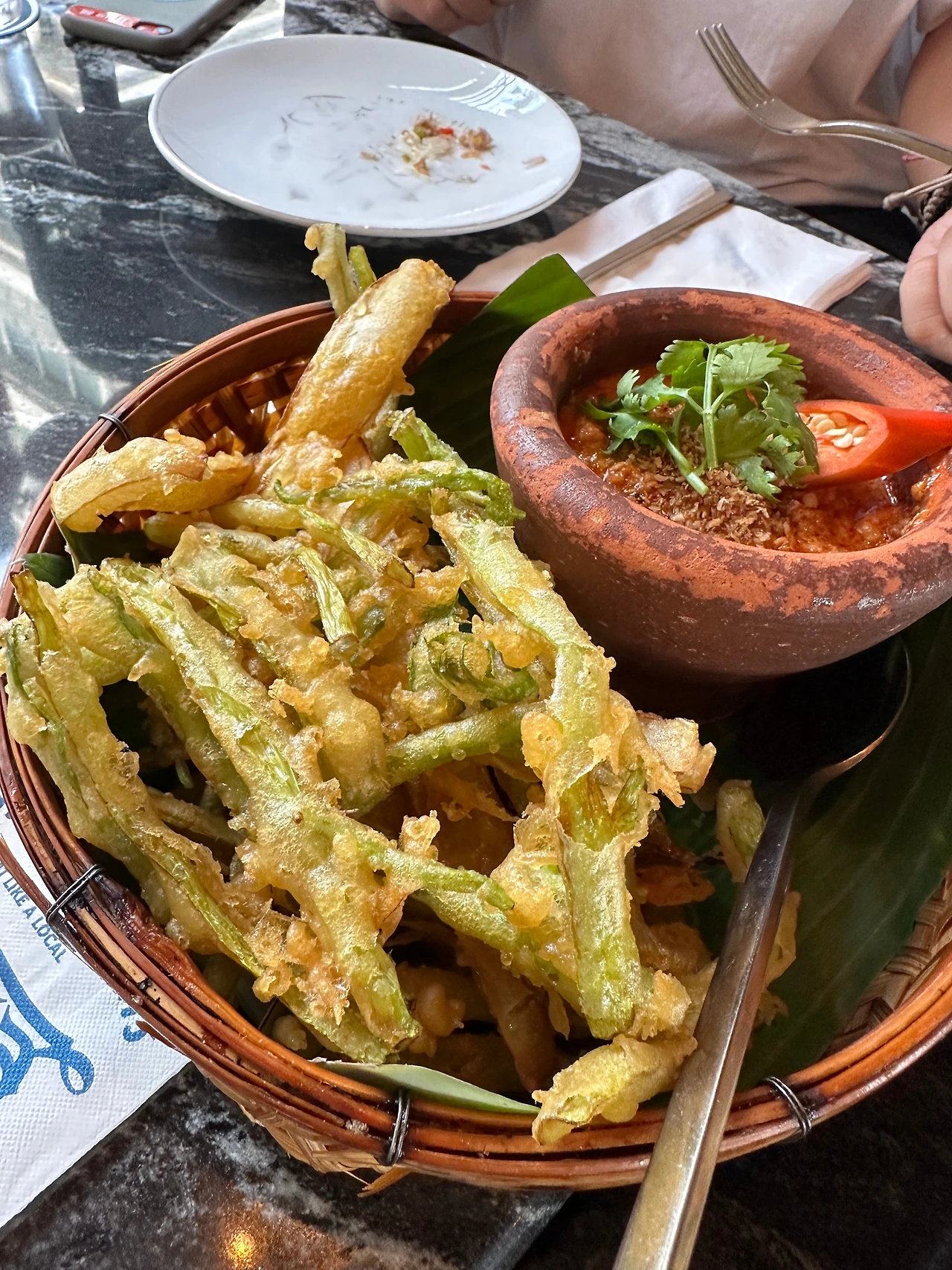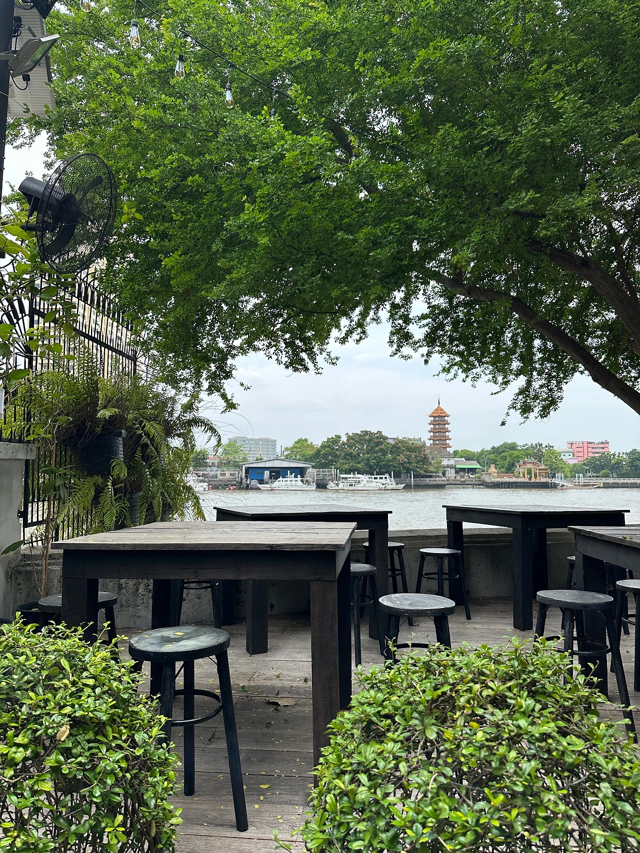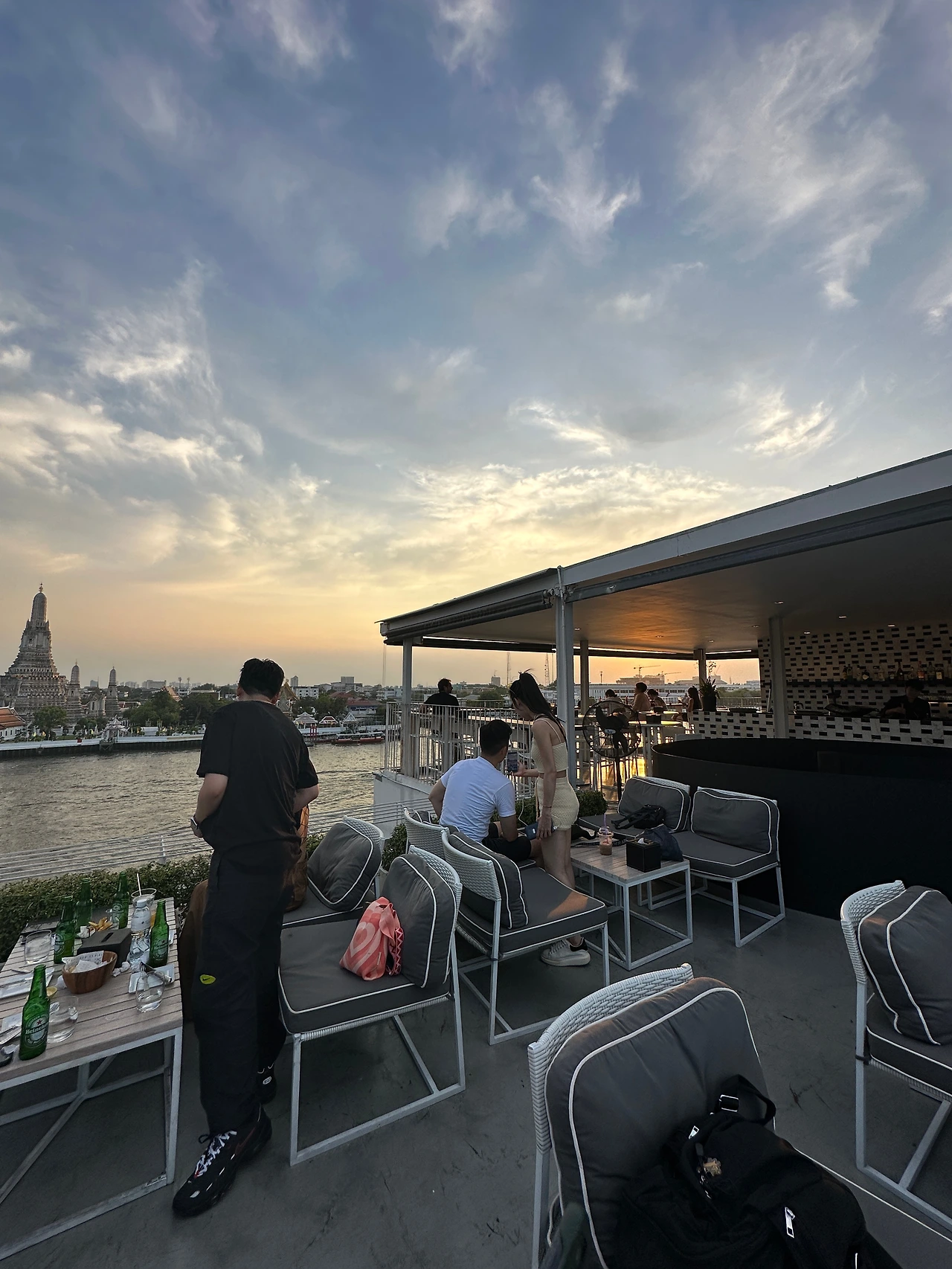 구경하다보니 배가 고파져서 왓아룬이 보이는 미슐랭을 받았다는 레스토랑으로 고고! 예약이 어렵다는데 일단 가봤더니 루프탑엔 자리가 없고 1층에만 있다구해서 일단 먹어보기!