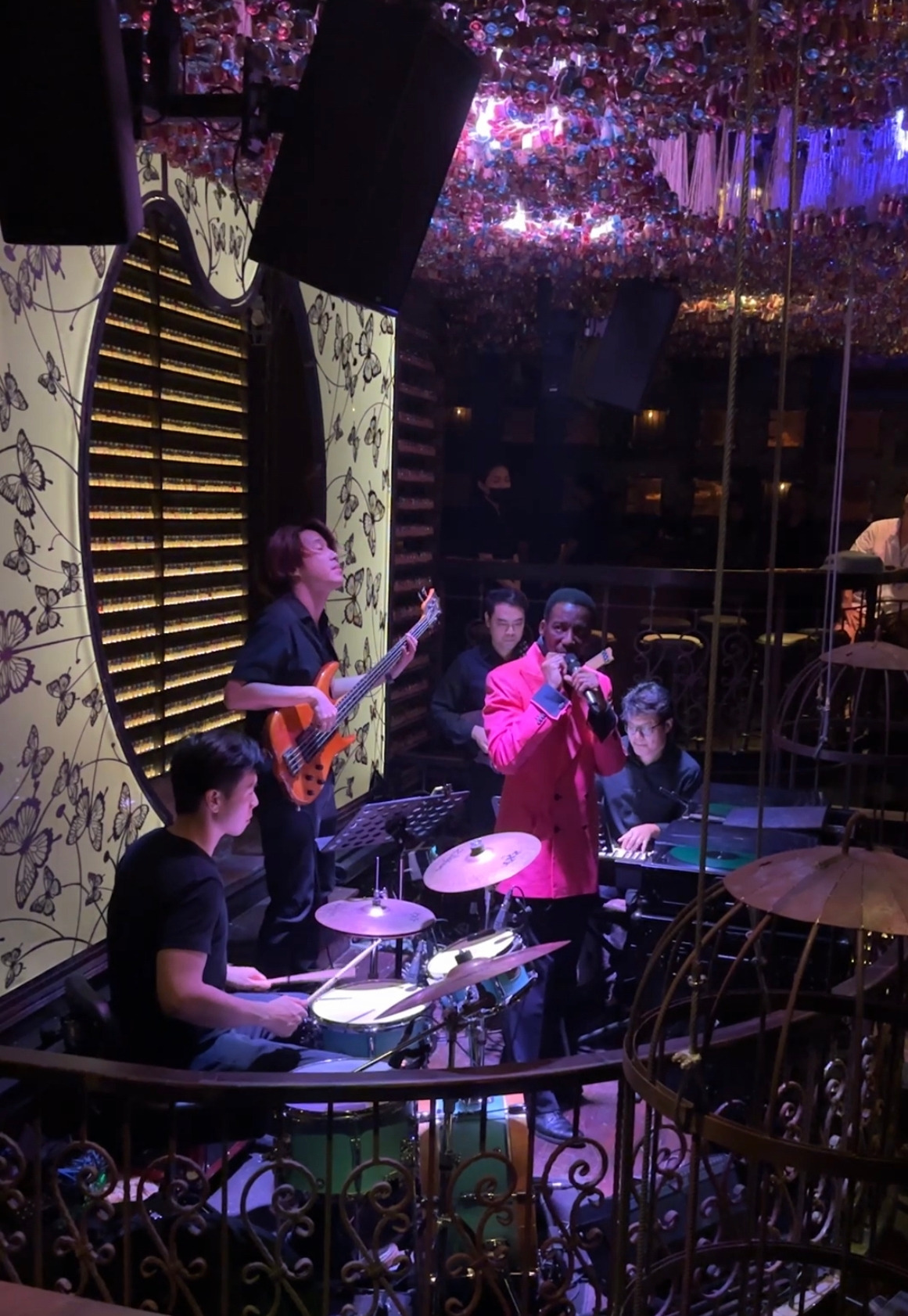 통로 쪽에 체크인을 하고, 일요일이라 공연하는 재즈바가 많지 않아서 크고 유명한 iron fairies 로 갔다. 원래 통로쪽에 있었는데 코로나때 폐업했다가 프롬퐁 쪽에 다시 생김. 새로 생긴 곳은 첨이다. 이게 프랜차이즈?!라서 홍콩 등 각지에 있고 한국에도 얼마전에 문을 열었다. 화려한 내부와 화려한 공연!