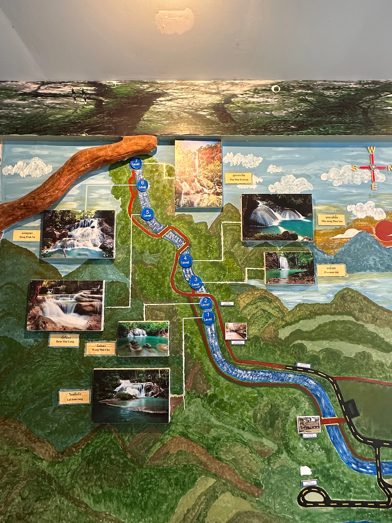 한시간 반쯤 걸려서 폭포에 도착! 입구에서 폭포 직원?이 버스에 타서 입장권을 판다. 300밧.