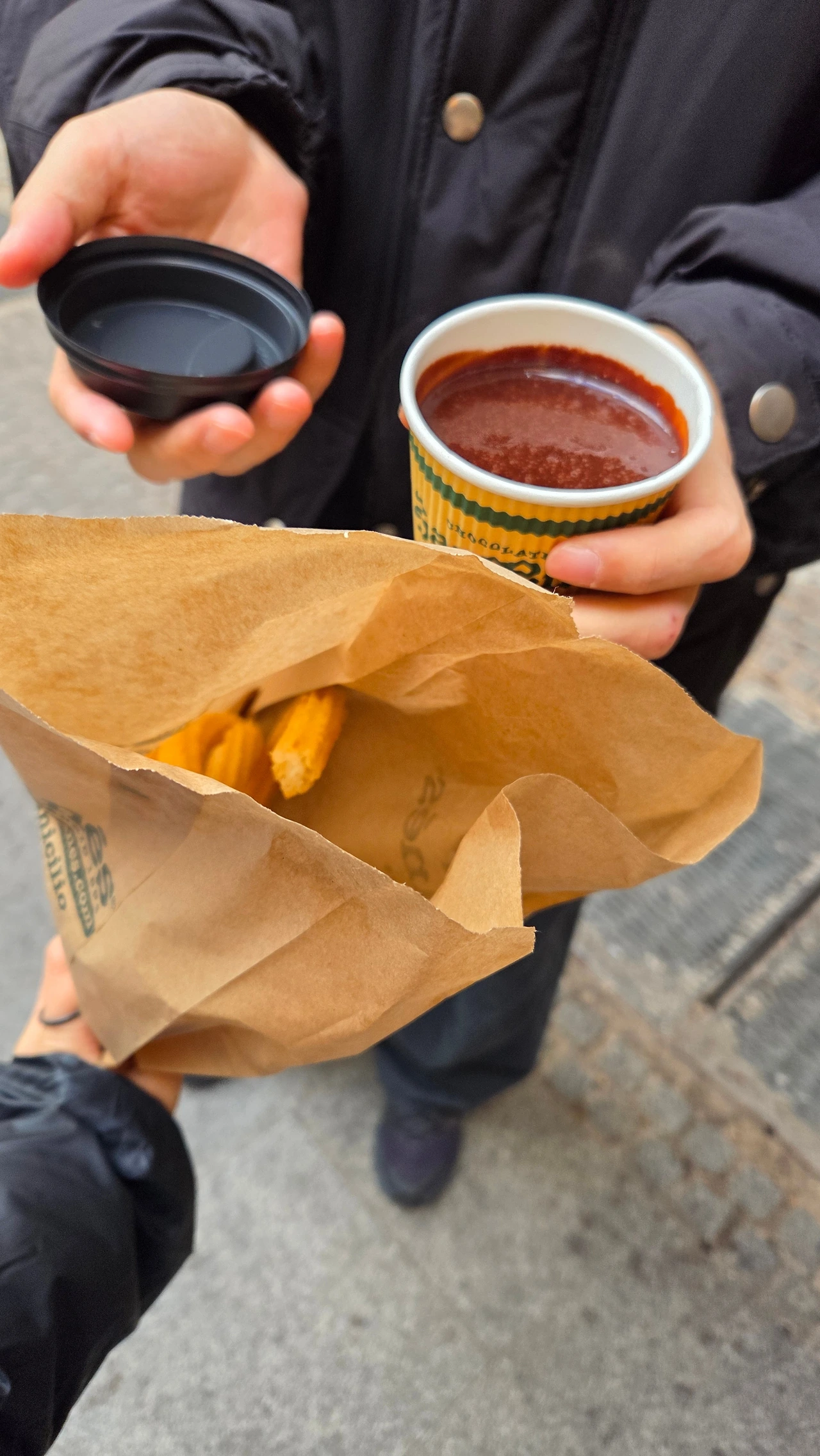 이왕 일어난거 해도 짧은데 아침 구경에 나섰다. 츄러스먹고 시장가서 와인마시고 커피마시고 버스타고 공원가서 산책하고 할거 다 하고 숙소와서 쉬다가 배고파질때 나가서 홍합찜먹고 또 쉬다가 저녁은 말라사냐쪽 타파스집.