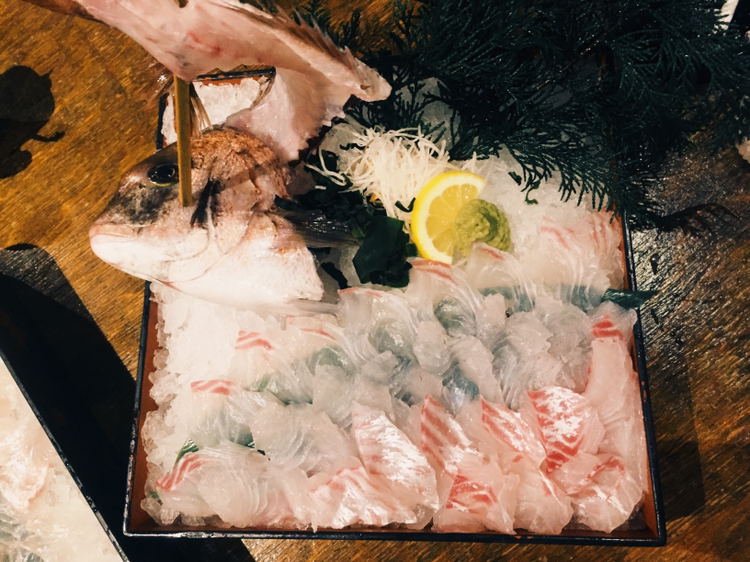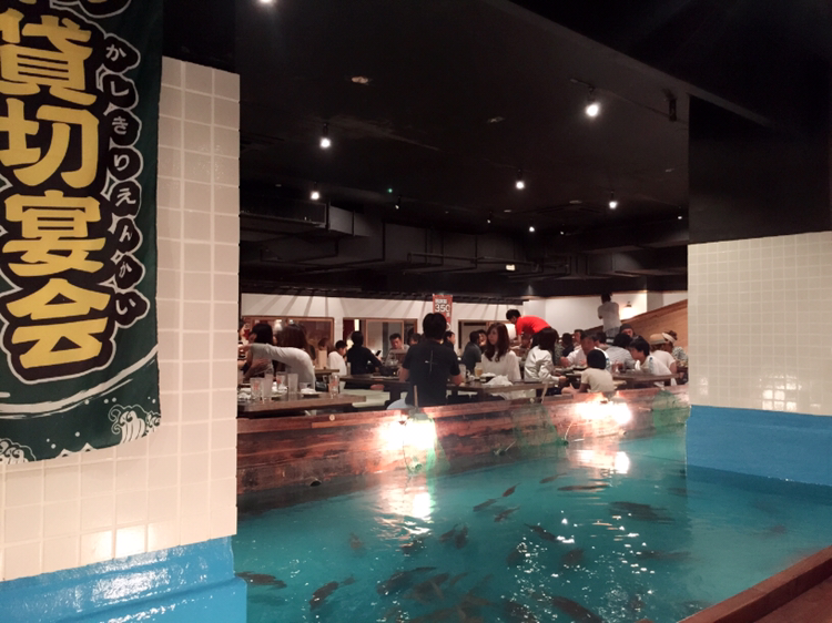 낚싯대로 물고기를 잡으면 500-800엔 정도 할인된 가격에 회를 먹을 수 있다. 할인도 할인이지만 못 잡으면 어쩌나 하는 조바심과 잡고 나면 북을 두드리며 겁나 큰소리로 축하받는 맛이 쏠쏠.